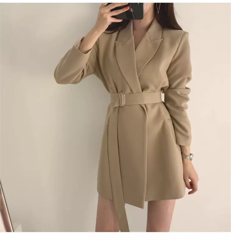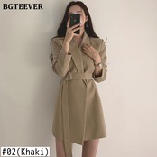 【新作】【送料無料】 BGTEEVEROLスタイルノッチカラーサッシレディースブレザードレスフルスリーブスリムウエストショートドレススーツドレス 12b153907150561
