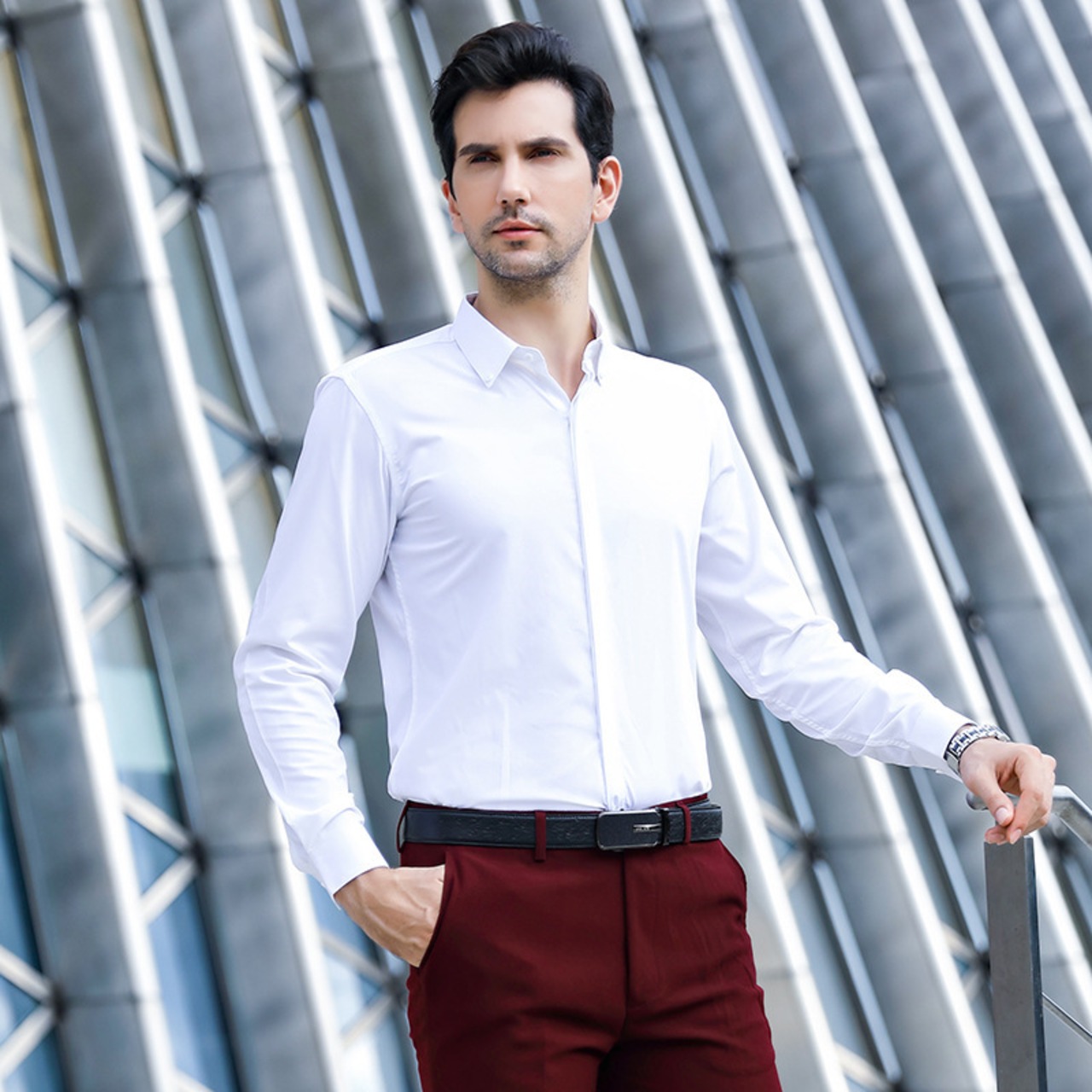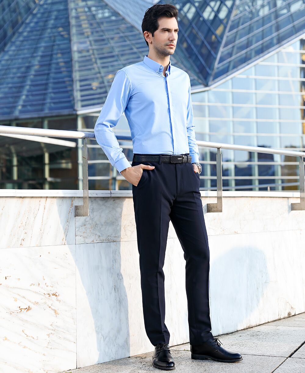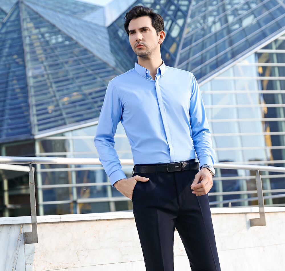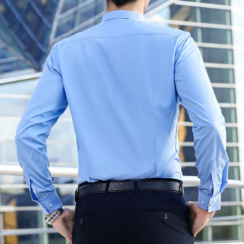 【新作】【送料無料】 紳士メンズラージサイズマイクロストレッチノンアイアンインビジブル前立て無地シャツスリムプロラペル長袖メンズシャツ-アリババ ロング 大きめサイズ ソリッドカラー 12b323850167246