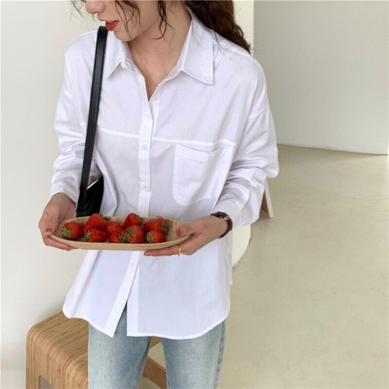 【新作】【送料無料】 BGTEEVER春夏女性ブラウスシャツシングルブレストポケットホワイトシャツルーズトップス2020 スプリング 春物 サマー 夏物 12b155477072225