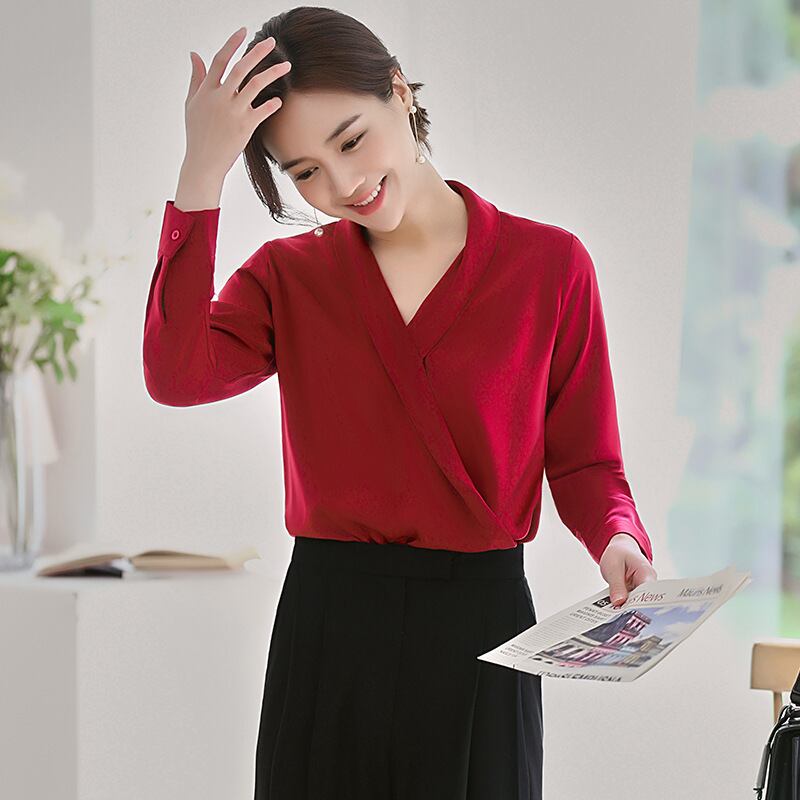 【新作】【送料無料】 リアルのデザインセンスニッチ鎖骨シャツ2020春と秋の新しいファッションシャツ女性の長袖の薄いトレンド-アリババ ロング スプリング 春物 オータム 秋物 12b259591503371