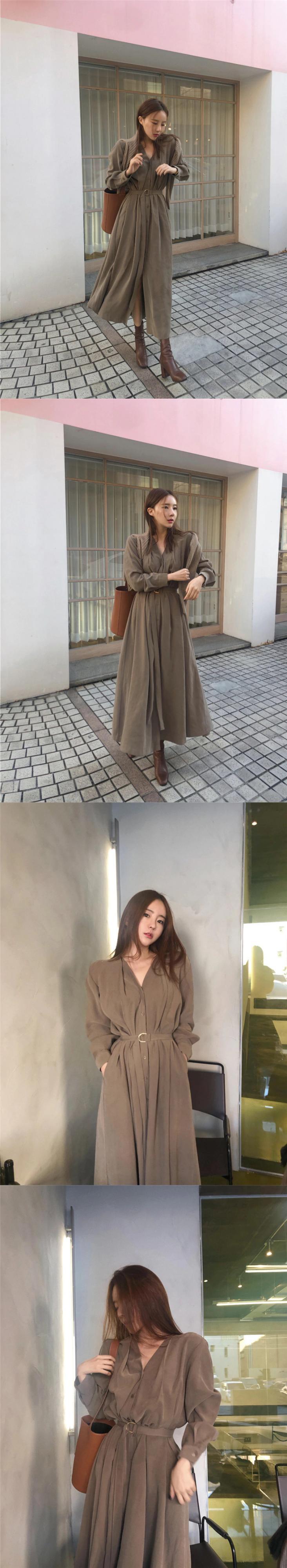 【新作】【送料無料】 BGTEEVERVネックシングルブレストロングドレス2020春長袖ベルト付き女性ドレスストレートルーズVestidos スプリング 春物 ハーネス 12b177019272799