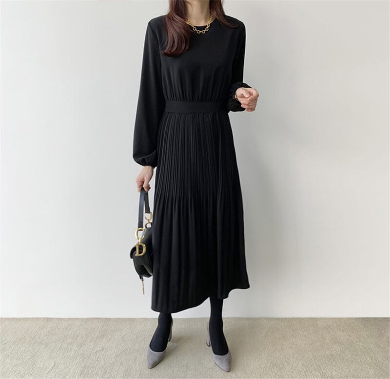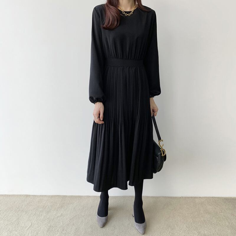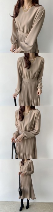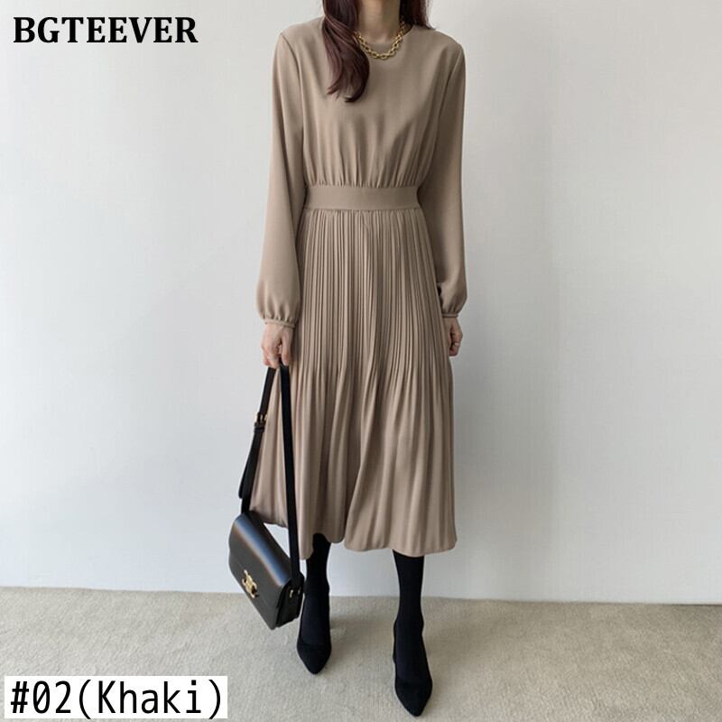 【新作】【送料無料】 BGTEEVEROネックドレスレディースフルスリーブエラスティックウエストAラインドレスオフィスワークプリーツ 伸縮 会社 学校 通勤や通学にも 12b198930472259