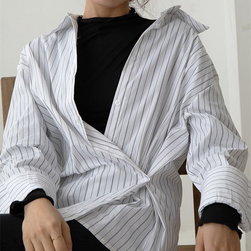 【新作】【送料無料】 BGTEEVERスペシャルボタンレディースブラウスシャツターンダウンカラーホワイトシャツストライプトップス2020春夏 スプリング 春物 サマー 夏物 12b174183611734