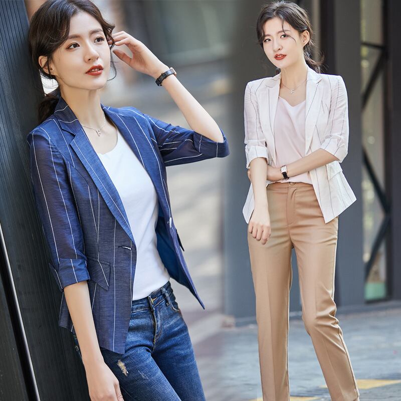 【新作】【送料無料】 2020年春の商品レディーススモールジャケットeseスリムストライプワイルドテンセルシンスモールスーツレディース-アリババ スプリング 春物 12b36744811589