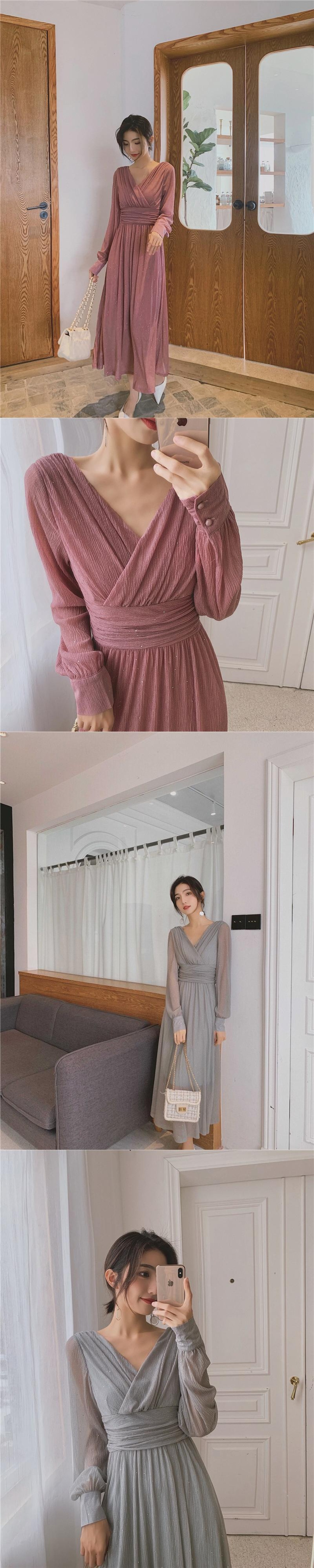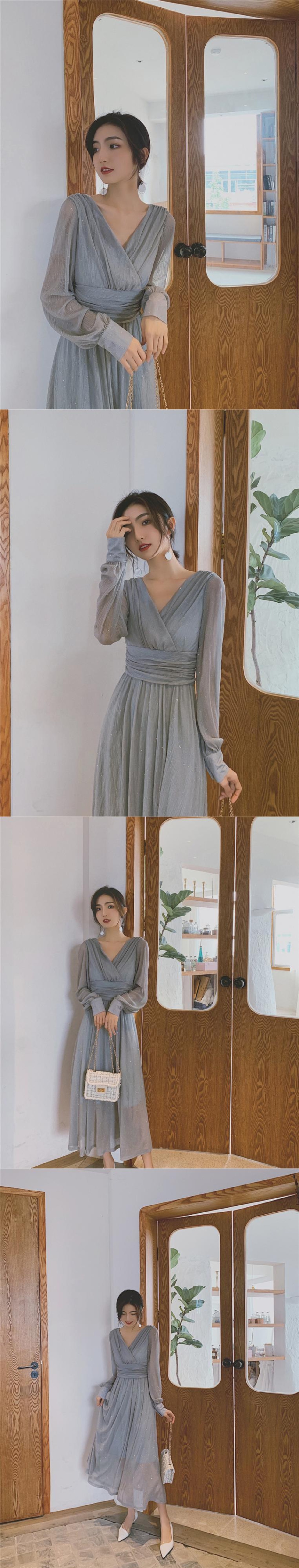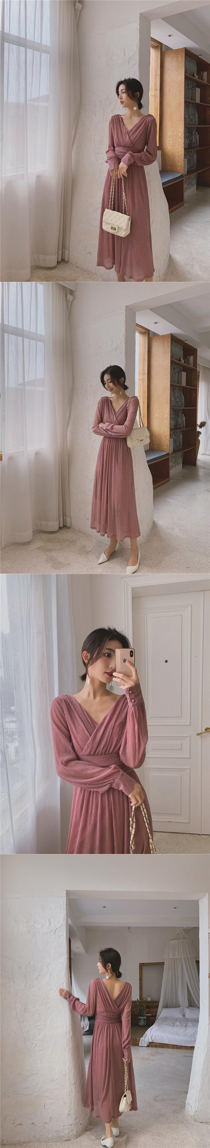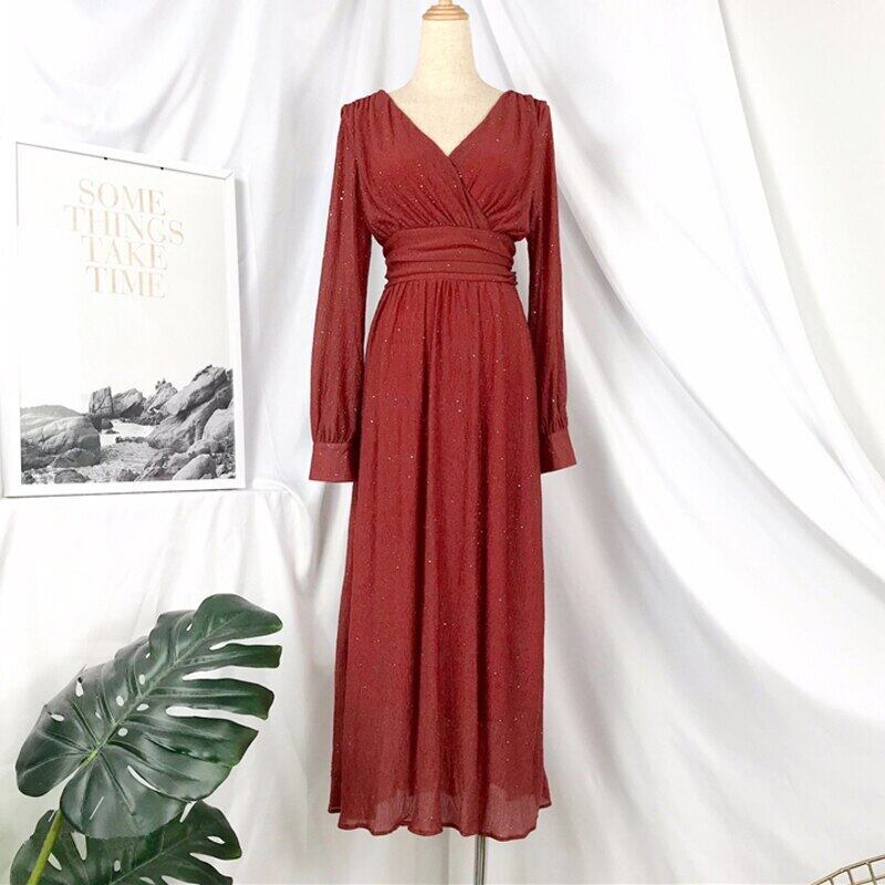 【新作】【送料無料】 BGTEEVERヴィンテージVネックスリムウエストレディースロングドレスソリッドAラインドレスプリーツパーティーVestidosfemme 2020 フェミニン ソリッドカラー ビンテージ 12b170120154656