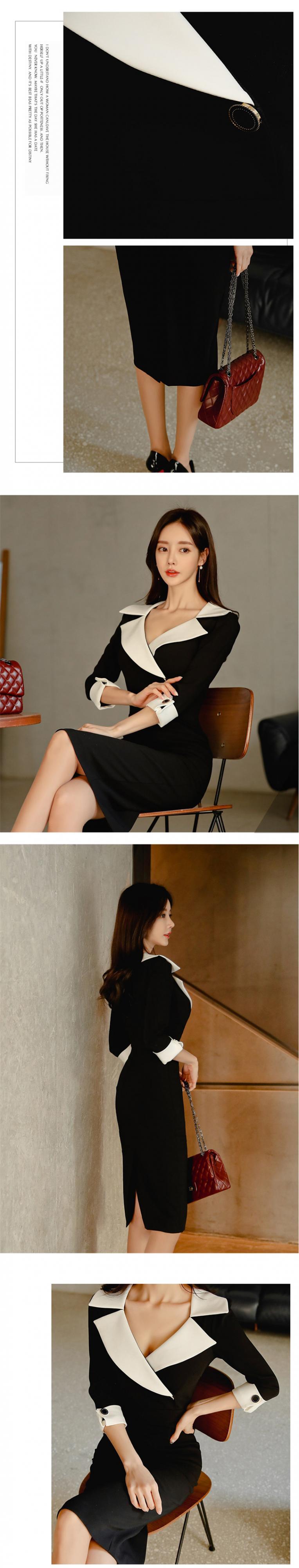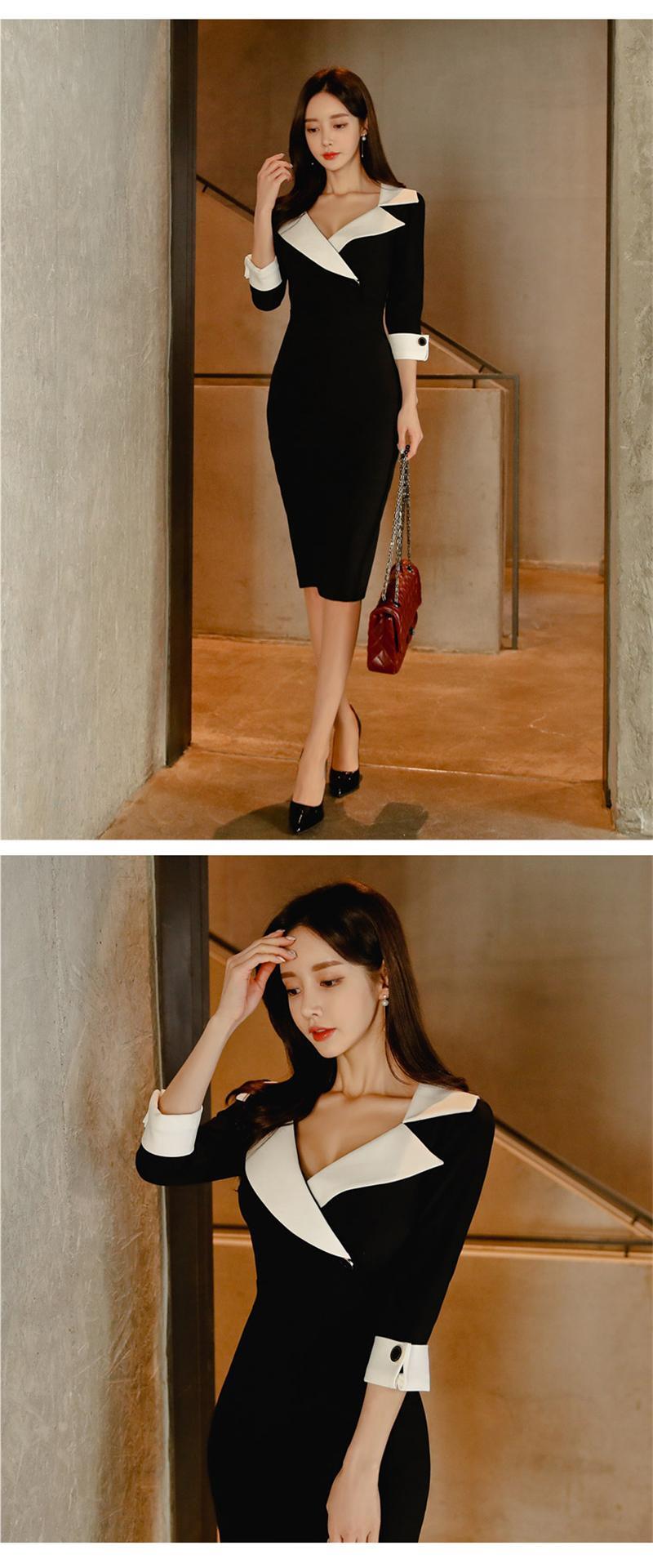 【新作】【送料無料】 BGTEEVEROLスタイルノッチカラーレディースペンシルドレスウエストパッチワークボディコンドレスパーティーVestidosfemme 2020 フェミニン 12b182146853721