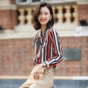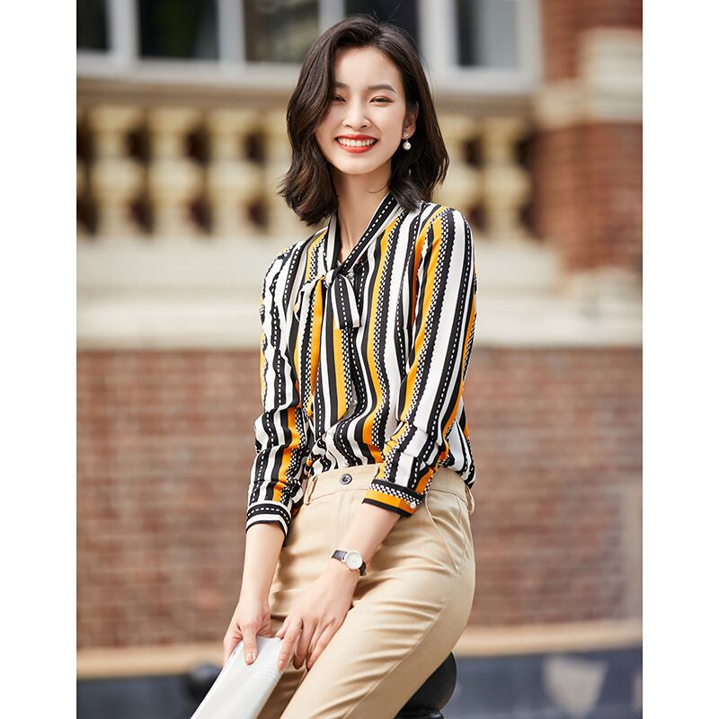 【新作】【送料無料】 Real s2020秋冬新人パーソナリティストライプシャツレディース気質羽ばたきワイドルーズラージサイズオールマッチシャツアウター-Alibaba 大きめサイズ オータム 秋物 ウィンター 冬物 12b215919442677