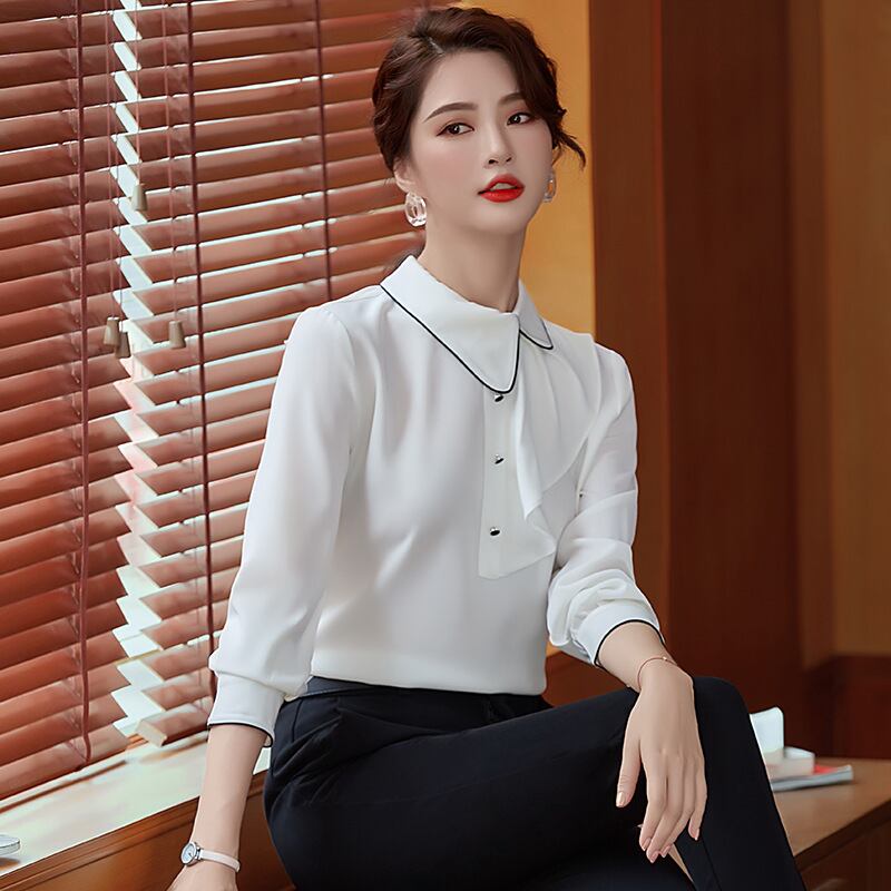【新作】【送料無料】 Real s2020春秋新作オールマッチ気質シャツレディースバージョンのラージサイズアンチリンクルシャツ無地無地薄手スタイル-アリババ ロング 大きめサイズ スプリング 春物 オータム 秋物 ソリッドカラー 12b268827461450