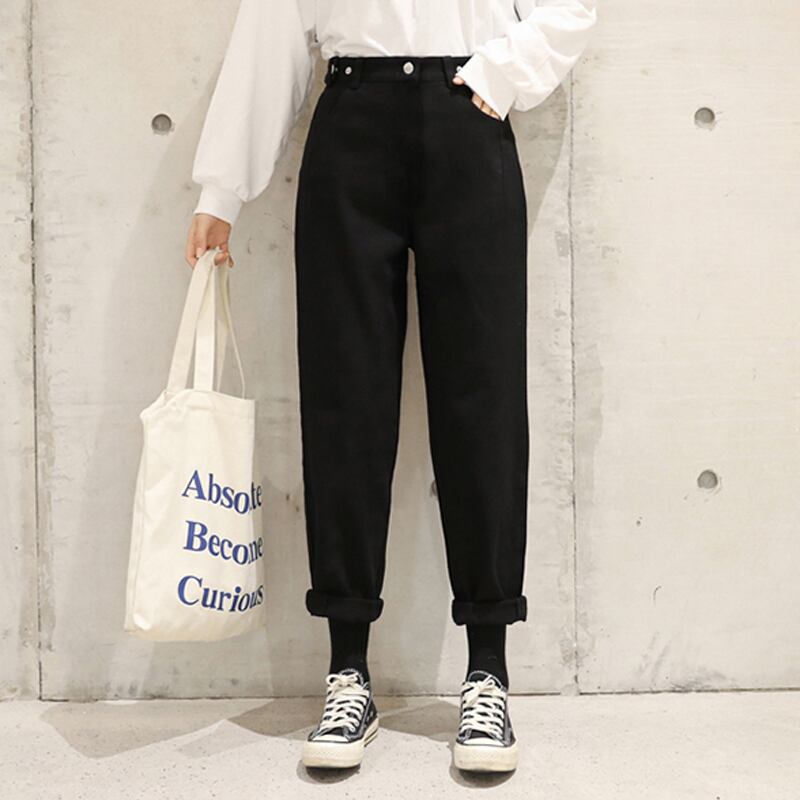 【新作】【送料無料】 BGTEEVER Women Street Denim Jeans Waist Loose Denim Pants 2020 Spring Harem Jeans Trousers ストリート スプリング 春物 12b146574816426