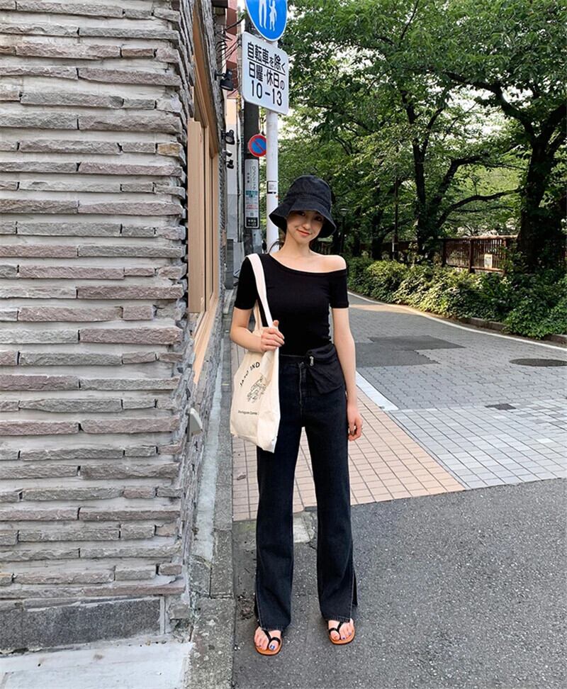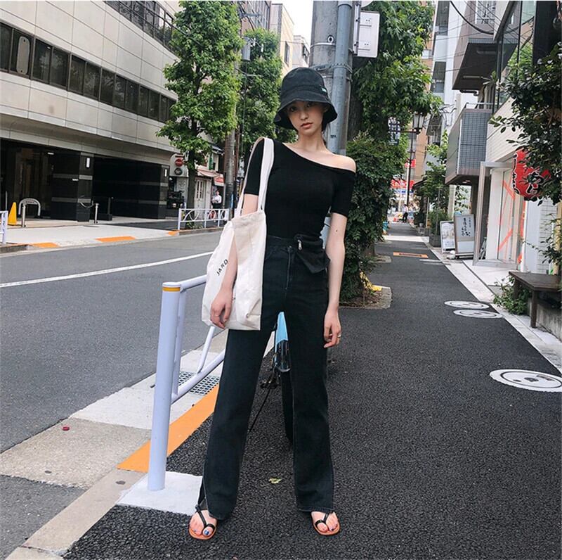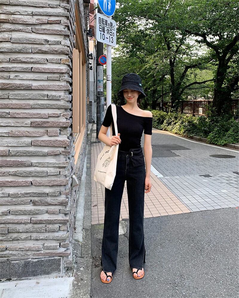 【新作】【送料無料】 BGTEEVERスプリングウエストジーンズレディースシックストレートデニムジーンズスプリットルースストリートウェアブラックジーンズ2020 春物 12b190173272162