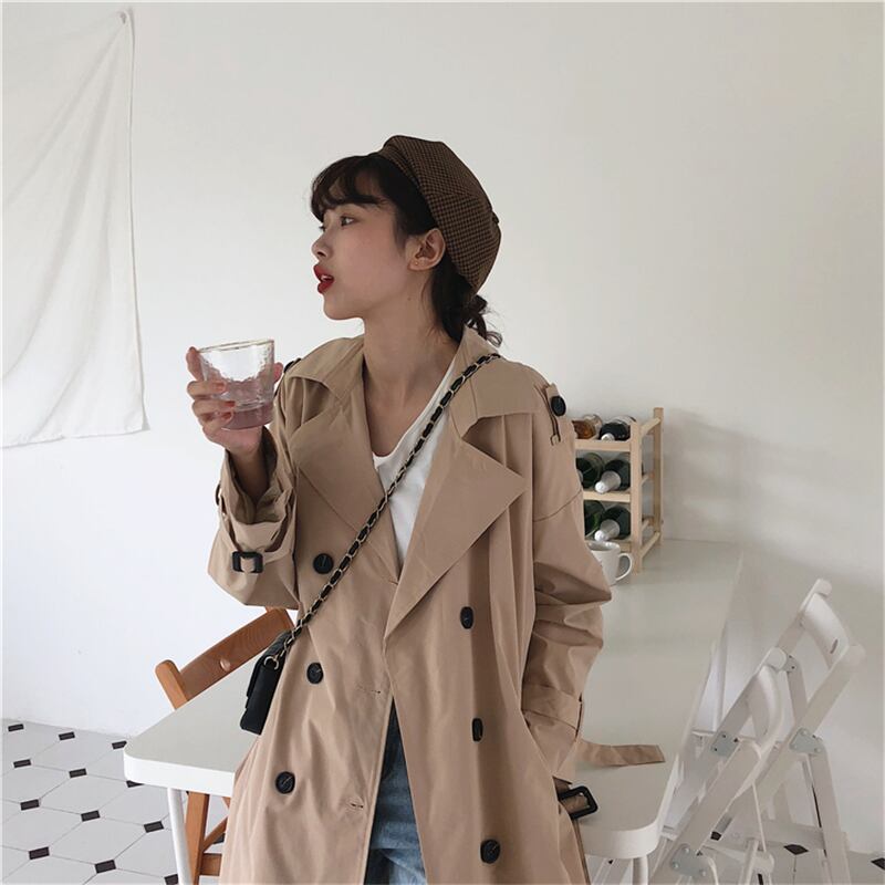 【新作】【送料無料】 BGTEEVERターンダウンネックレディーストレンチコートルーズヴィンテージルーズダブルブレストオーバーコート春ウインドブレーカーアウター スプリング 春物 ビンテージ 12b182567869329