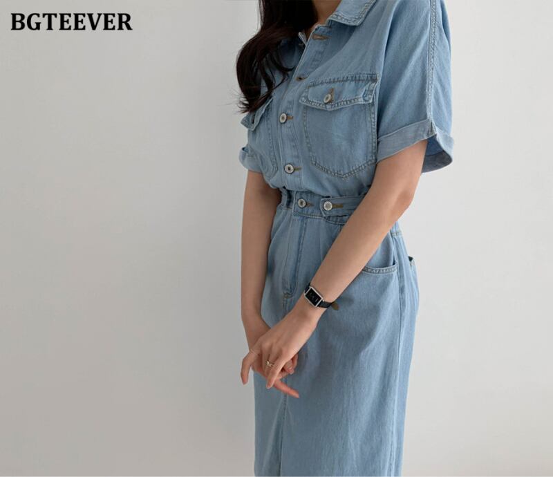 【新作】【送料無料】 BGTEEVER半袖スプリットデニムドレスレディースサマーバックレスエラスティックウエストドレス2020Midi Vestidos femme ショート ハーフスリーブ 伸縮 夏物 フェミニン 12b188455283720