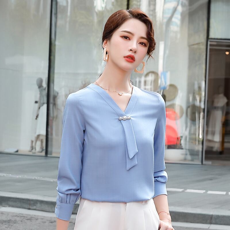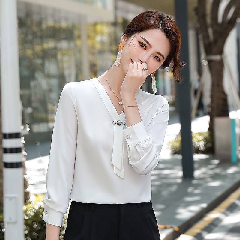 【新作】【送料無料】 Real s2020新気質長袖シャツ春と秋のバージョンの大型トップデザインニッチシャツ女性-アリババ ロング 大きめサイズ スプリング 春物 オータム 秋物 12b233530532065