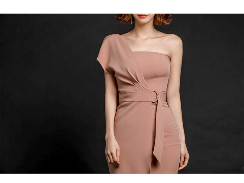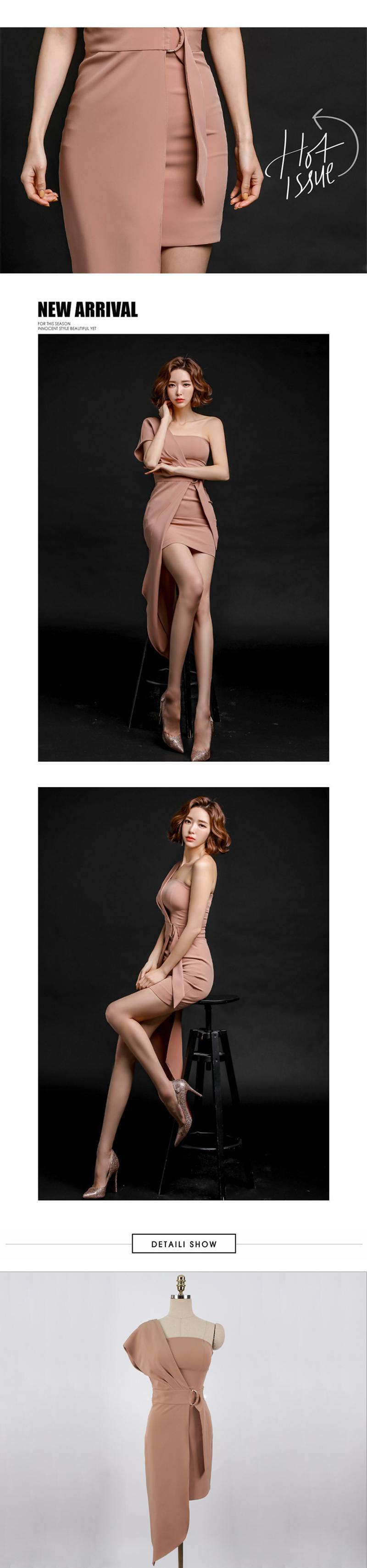 【新作】【送料無料】 BGTEEVERワンショルダーレディースボディコンドレス非対称ベルトミディドレススリムウエストパーティー Spring スプリング 春物 ハーネス 12b112200294040