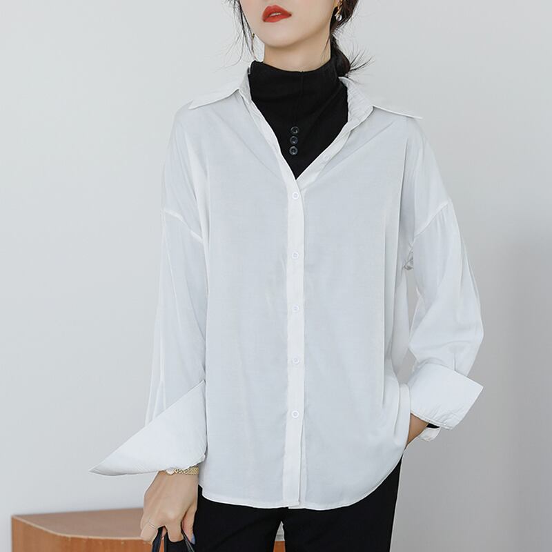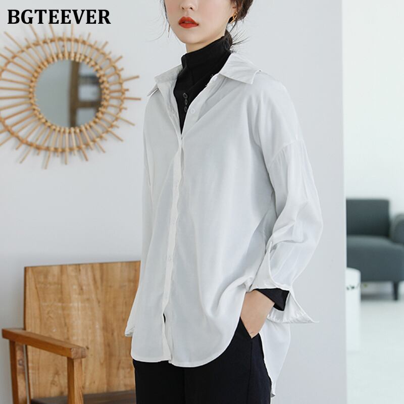 【新作】【送料無料】 BGTEEVEROLスタイルの女性のビジネスブラウス長袖春夏白いシャツシングルブレストルーズトップス ロング ホワイト スプリング 春物 サマー 夏物 12b131589408538