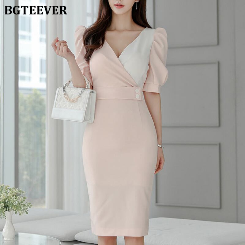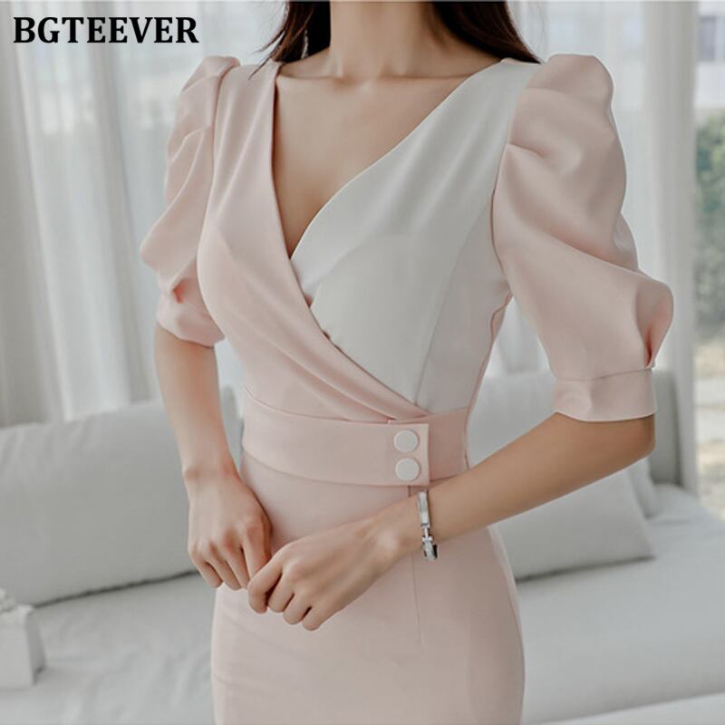 【新作】【送料無料】 BGTEEVEROLドレスVネックハーフスリーブスリムウエストレディースドレス2020春夏オフィスウェアVestidos 半袖 スプリング 春物 サマー 夏物 会社 学校 通勤や通学にも 12b185509796018