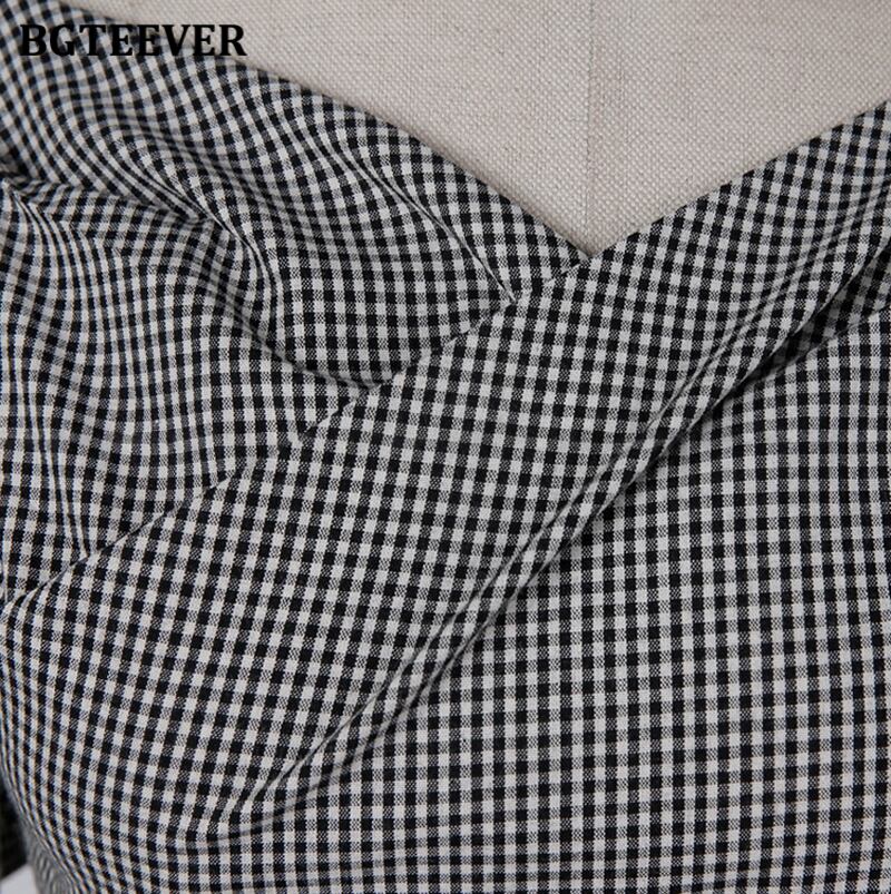 【新作】【送料無料】 BGTEEVERヴィンテージVネックパフスリーブチェック柄シースドレスレディーススリムウエストVestidosOLボディコンミニドレス ビンテージ 12b154832646194