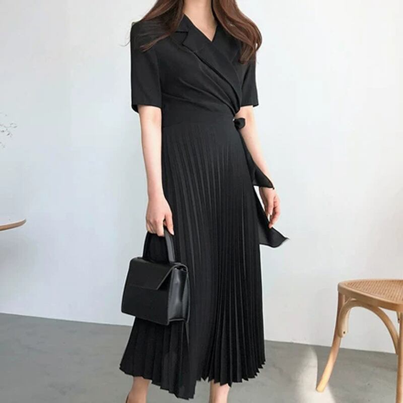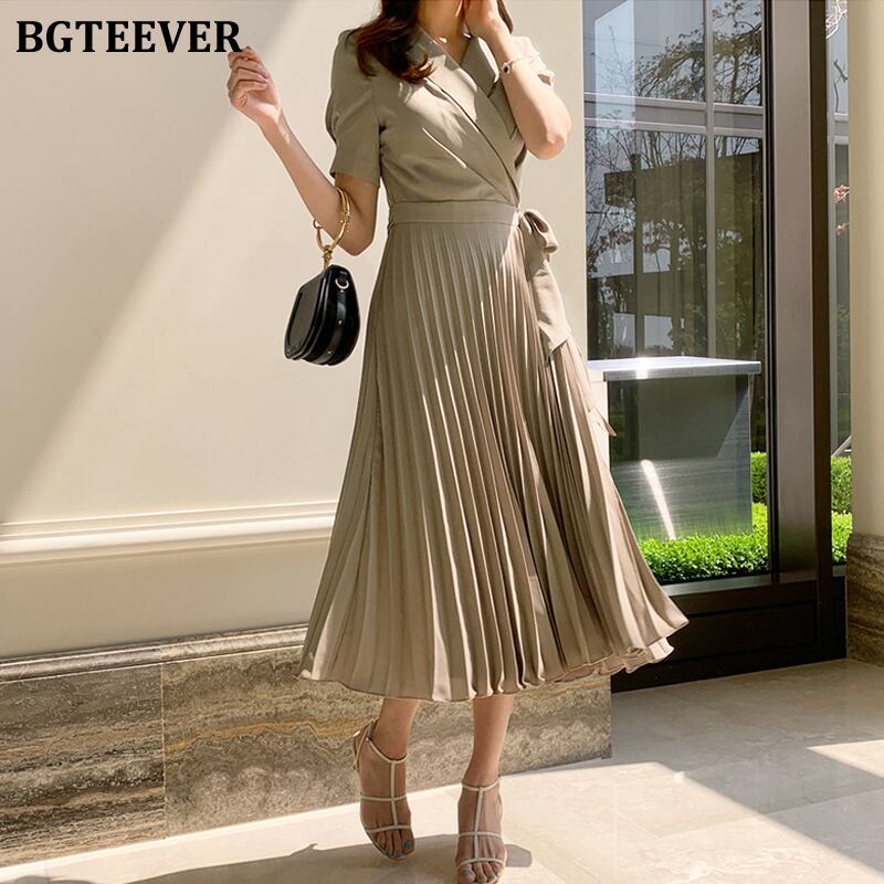 【新作】【送料無料】 BGTEEVERヴィンテージ半袖プリーツレディースドレスオフィスウェアレースアップミディドレス2020サマーウエストVestidosfemme ショート ハーフスリーブ 夏物 フェミニン ビンテージ 会社 学校 通勤や通学にも 12b132370355020