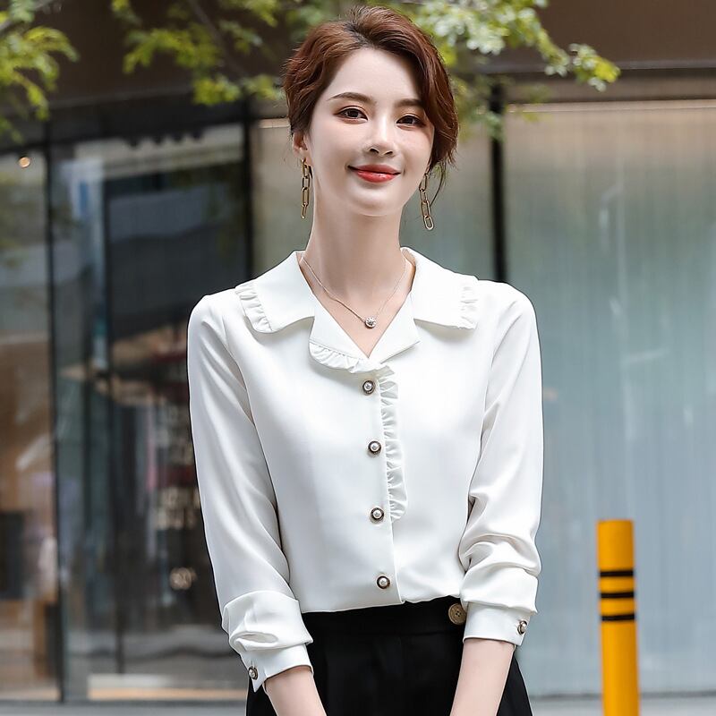 【新作】【送料無料】 本物の春と秋の気質プロの作業服シャツ女性2020新しいスタイルの長袖シャツデザインセンストップ-アリババ ロング スプリング 春物 オータム 秋物 12b260758989394
