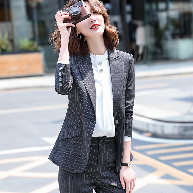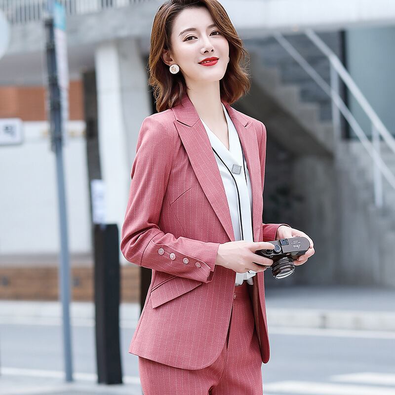 【新作】【送料無料】 Real s2020春と秋の新しいファッションストライプオールマッチプロスーツレディースルーズラージサイズツーピーススーツ-アリババ 大きめサイズ スプリング 春物 オータム 秋物 12b291858891609