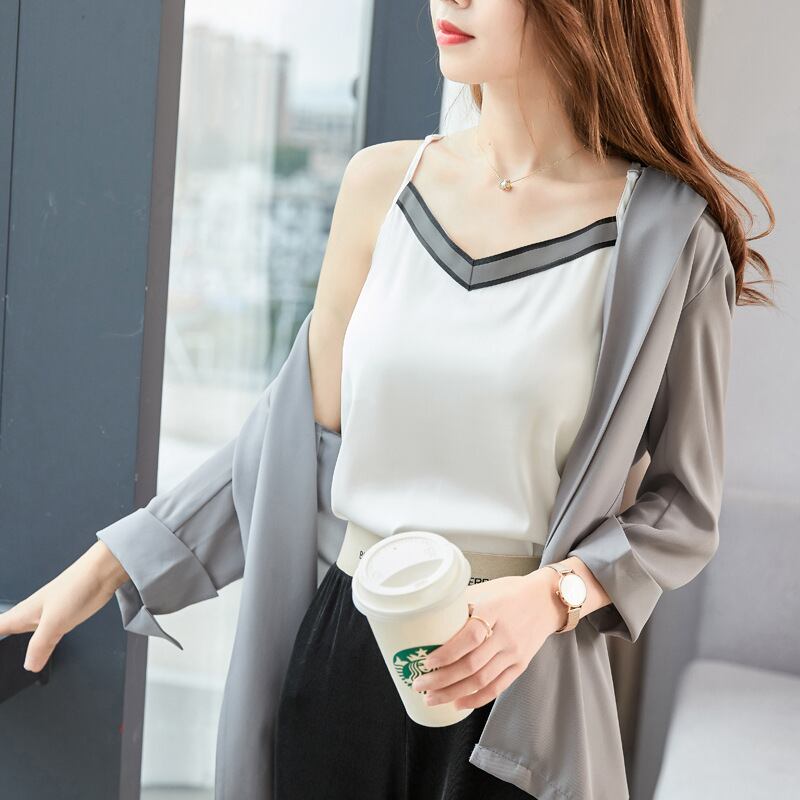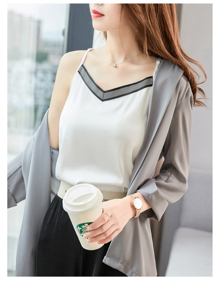 【新作】【送料無料】 Real sVネックステッチスリングキャミソールレディース2020年春秋新作シルクノースリーブプラスサイズアウタートレンド-アリババ 大きめサイズ スプリング 春物 オータム 秋物 12b28276345405