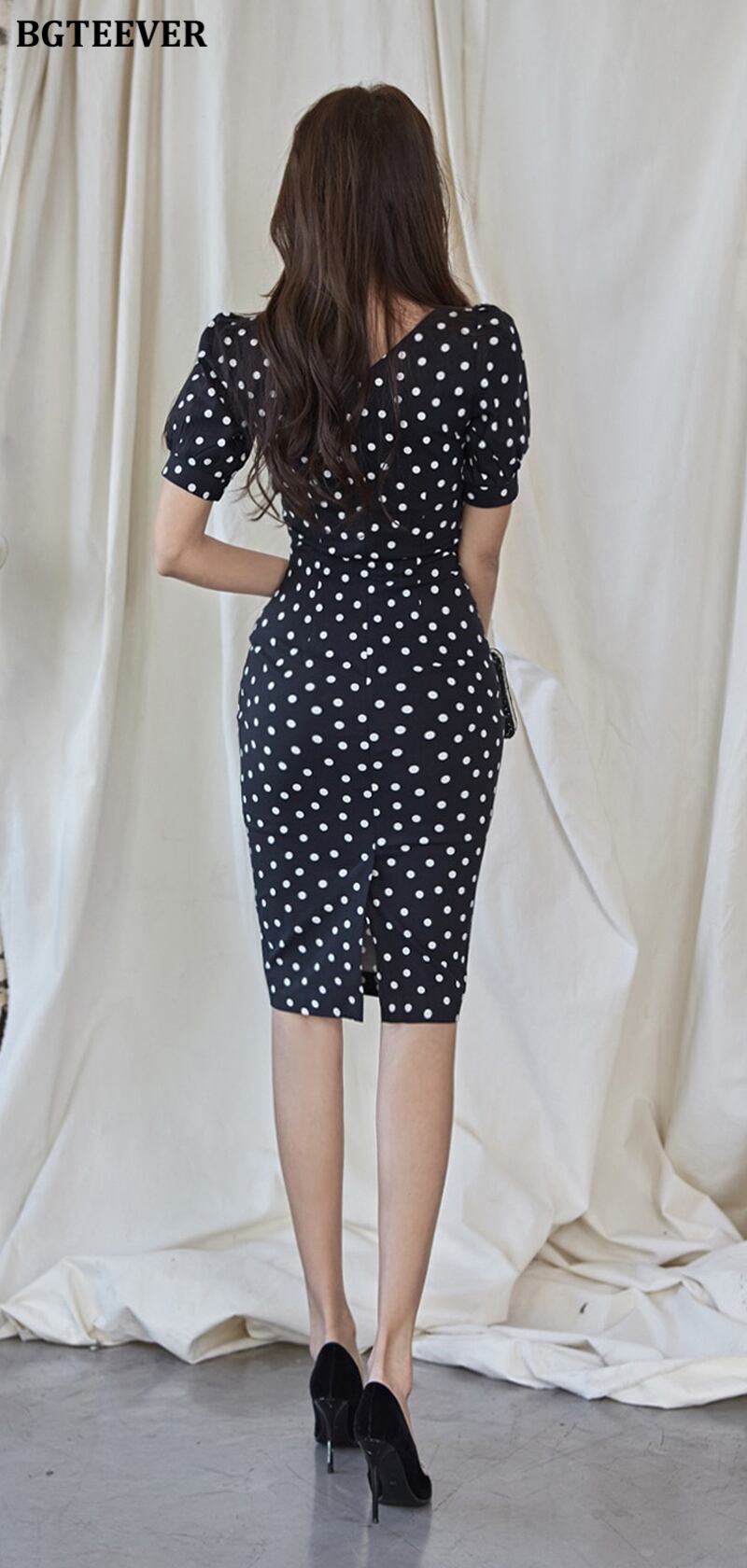 【新作】【送料無料】 BGTEEVER サマースクエアカラーレディースドレスドットプリントボタンシースボディコンドレス 夏物 スクウェア 12b180741673012