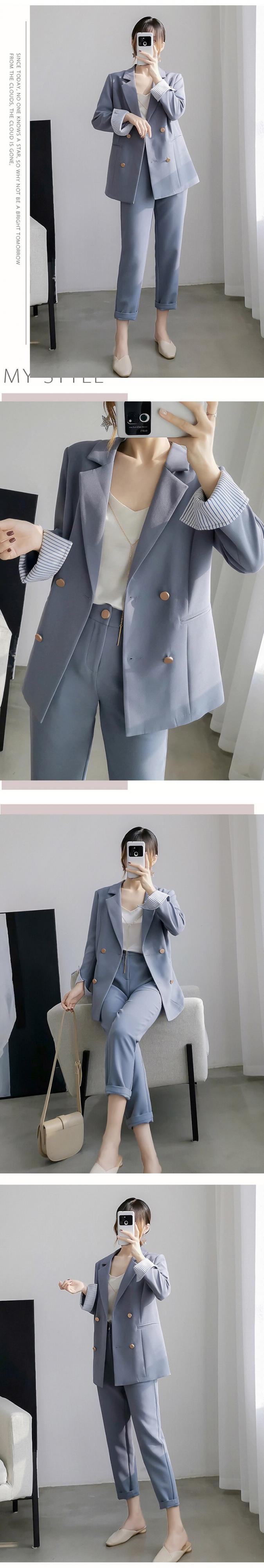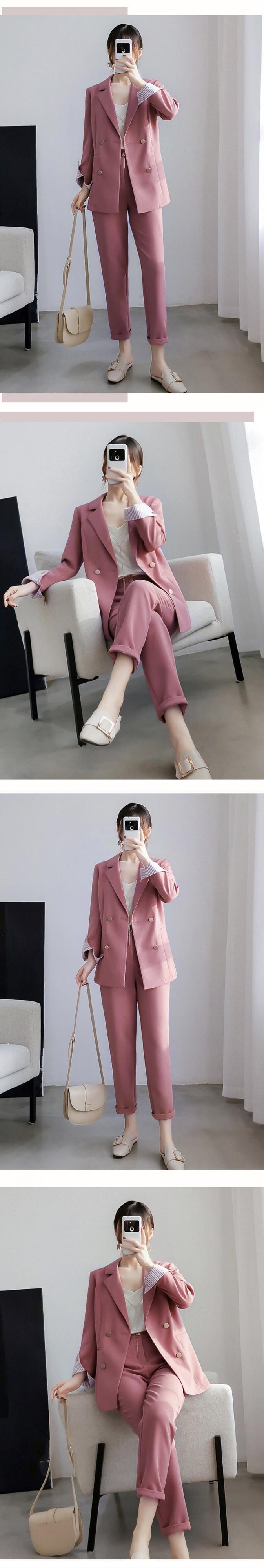 【新作】【送料無料】 BGTEEVERオフィスブレザースーツダブルブレストポケットブレザーパンツセットストリートウェアレディースパンツスーツ2020 会社 学校 通勤や通学にも 12b168180619132