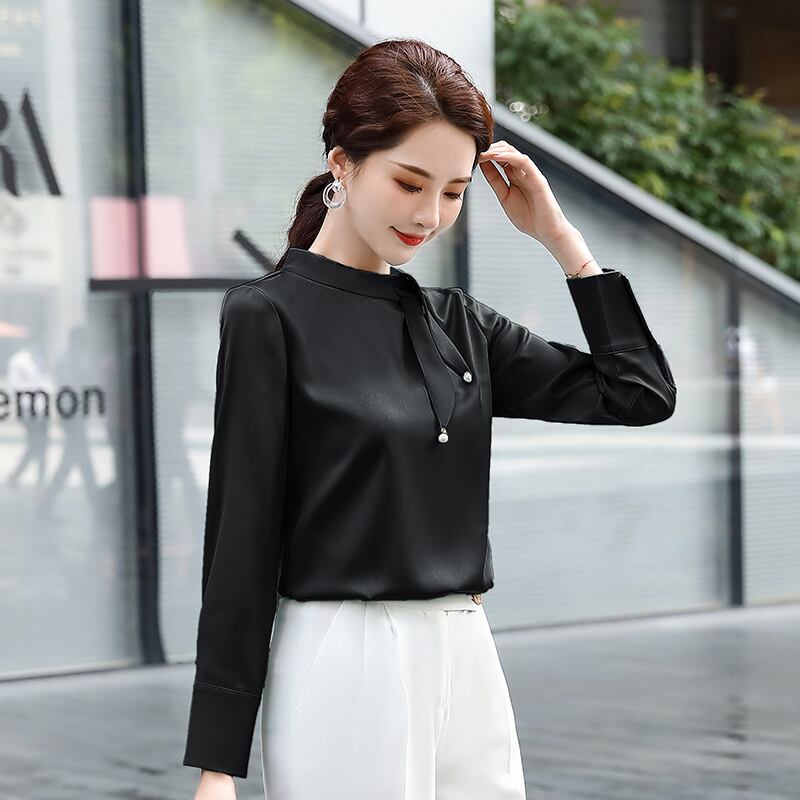 【新作】【送料無料】 本物の無地シャツ女性長袖気質プロシャツ作業服2020春と秋の新しいトップスプラスサイズ-アリババ ロング 大きめサイズ スプリング 春物 オータム 秋物 ソリッドカラー 12b29235216356