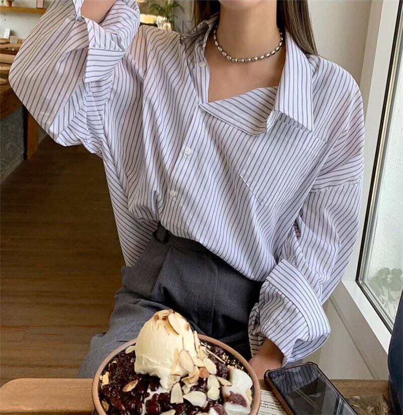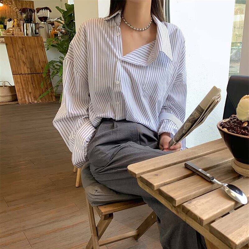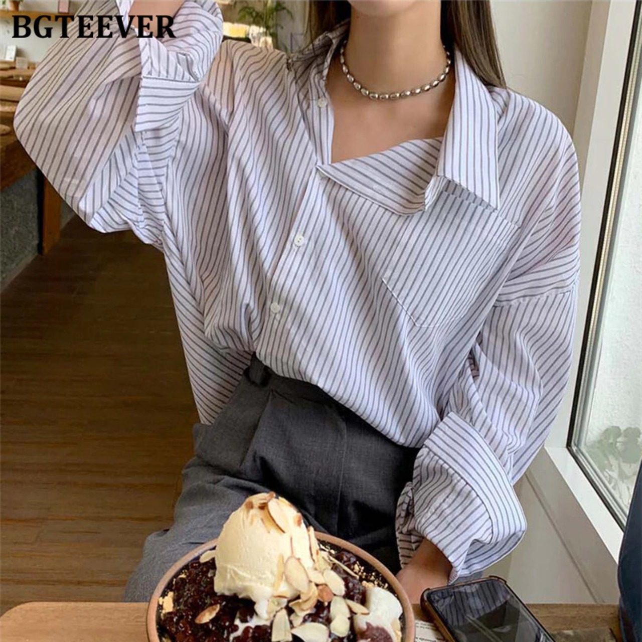 【新作】【送料無料】 BGTEEVER不規則なルーズストライプシャツ女性ターンダウンカラーポケットシャツトップス2020春夏ブラウス スプリング 春物 サマー 夏物 12b19929128111