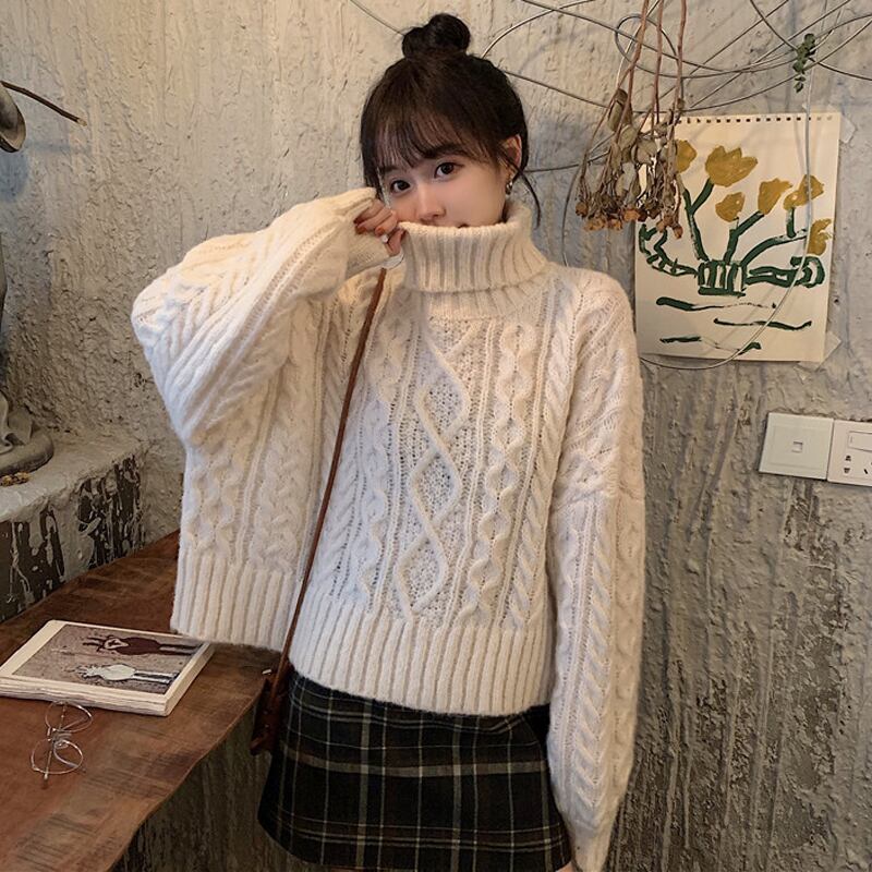 【新作】【送料無料】 ツイストストライプレディースセーター特大ルースタートルネックフルスリーブウィンターソフトウォームニットプルオーバー 冬物 12b173937784746