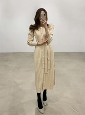 【新作】【送料無料】 BGTEEVERシングルブレストレディースセータードレスOネックレースアップニットドレスWinterLong Vestidos 2019 ロング ウィンター 冬物 12b127460453935