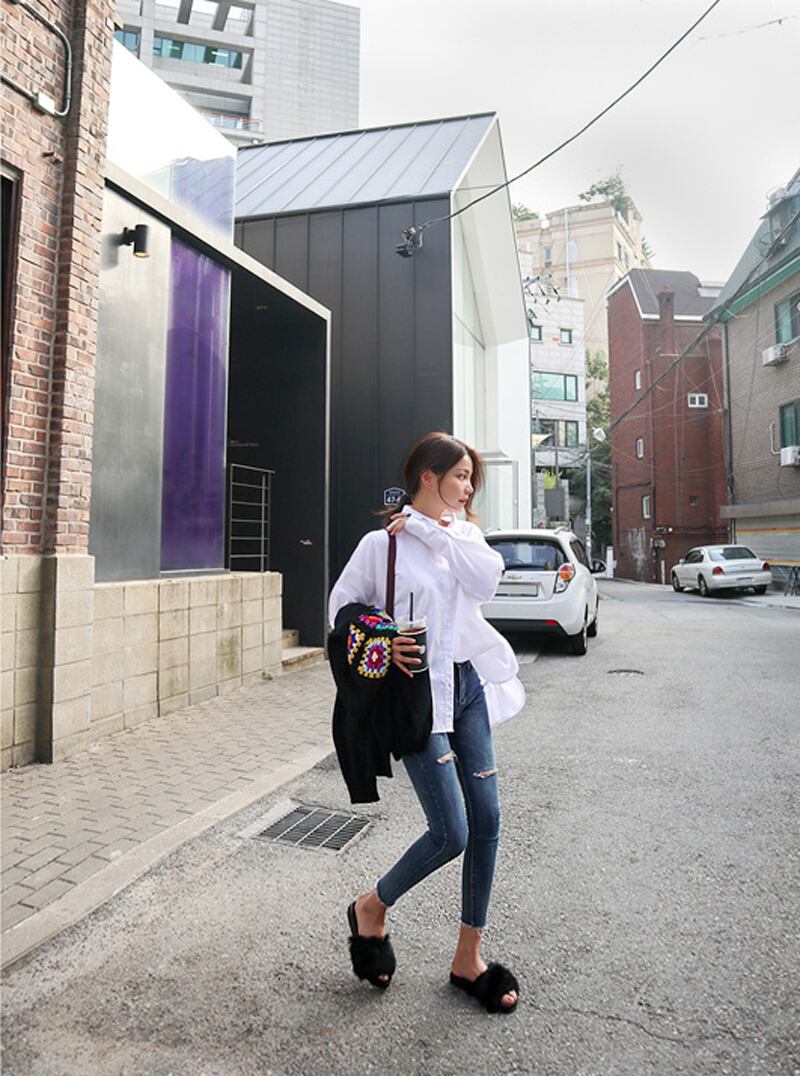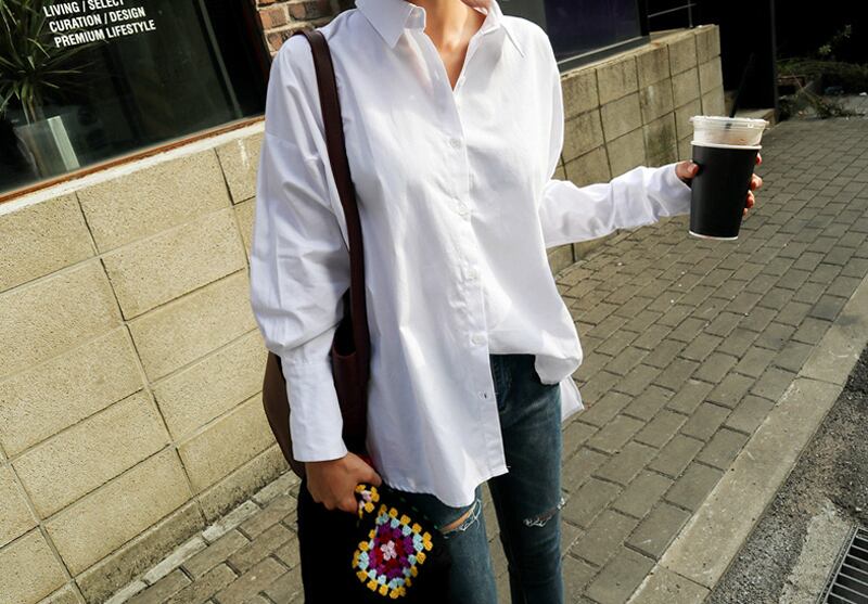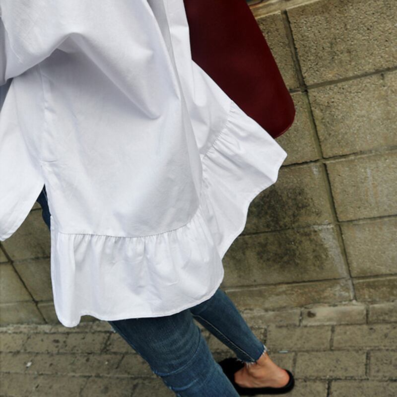 【新作】【送料無料】 BGTEEVER Women Ruffles Hem Turn-down Collar White Shirts Cuff Loose Blouses Shirt Tops 2019 ホワイト フリル ラッフル シャツ ブラウス 12b153584094844