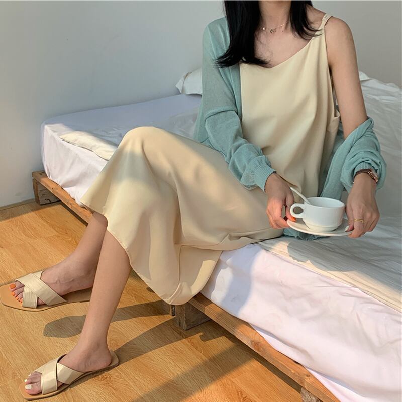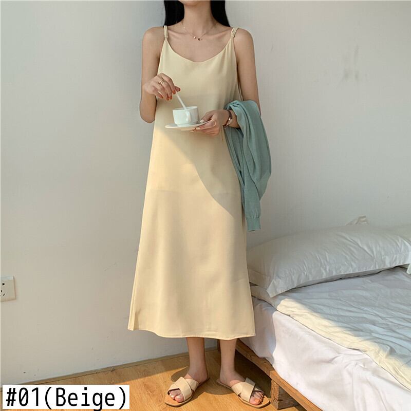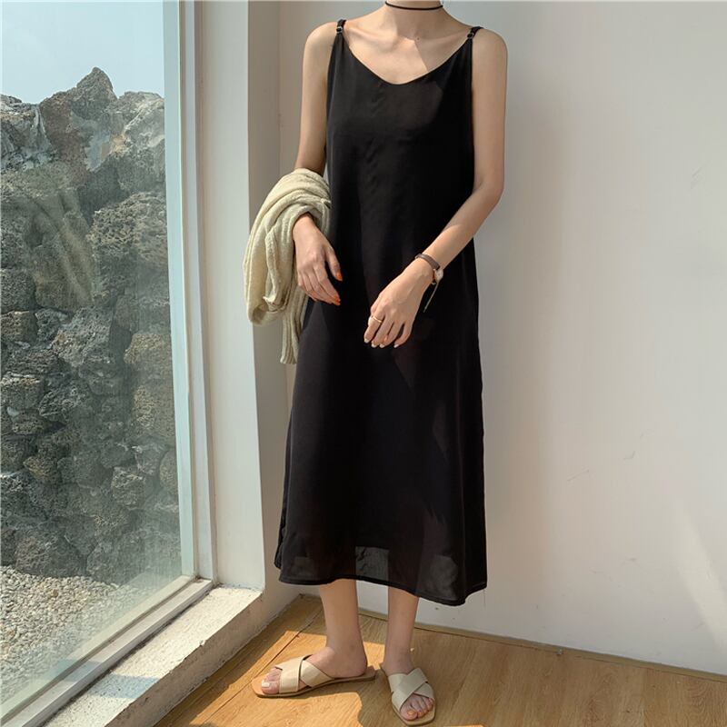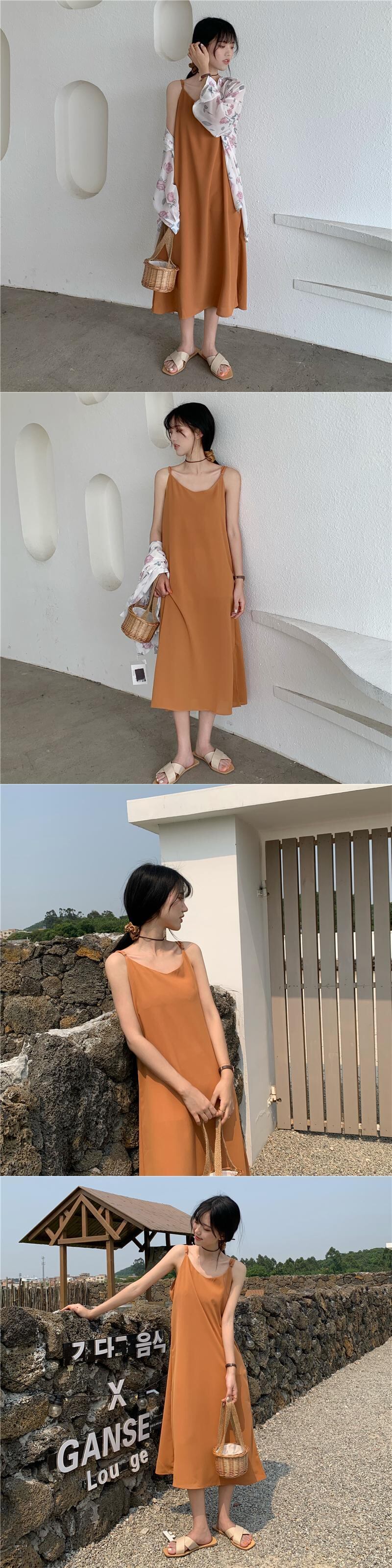 【新作】【送料無料】 サマーキャミソールドレスレディースベーシックVネックサンドレスシックなストラップレスソリッドルーズミディドレス 夏物 ソリッドカラー 12b155464712253