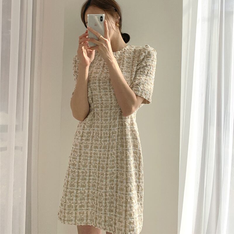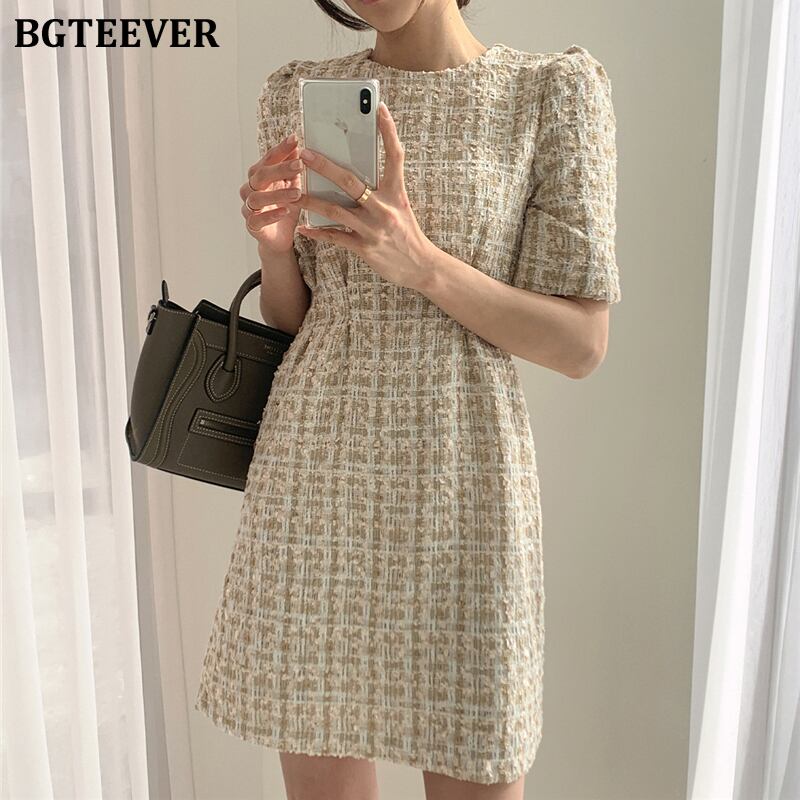 【新作】【送料無料】 BGTEEVERヴィンテージOネックスリムウエストレディースショートドレス半袖Aラインドレス2020ワークウェアVestidosfemme ハーフスリーブ フェミニン ビンテージ 12b121577137578