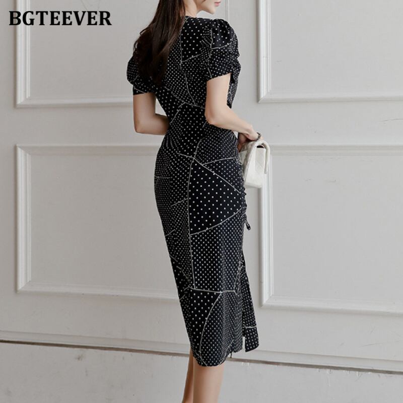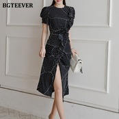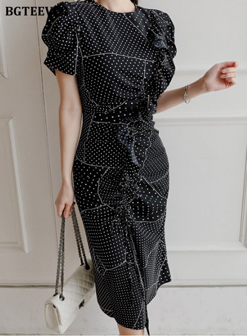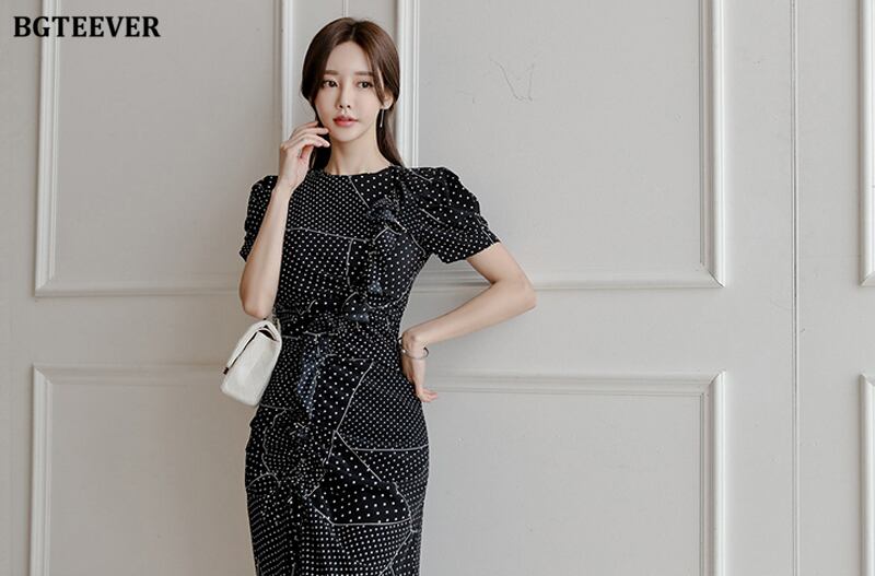 【新作】【送料無料】 BGTEEVERサマーフリルシースドレスOネック半袖ドットボディコンドレススリムウエストスプリットレディースドレスVestidos ショート ハーフスリーブ ラッフル 夏物 12b164481014905