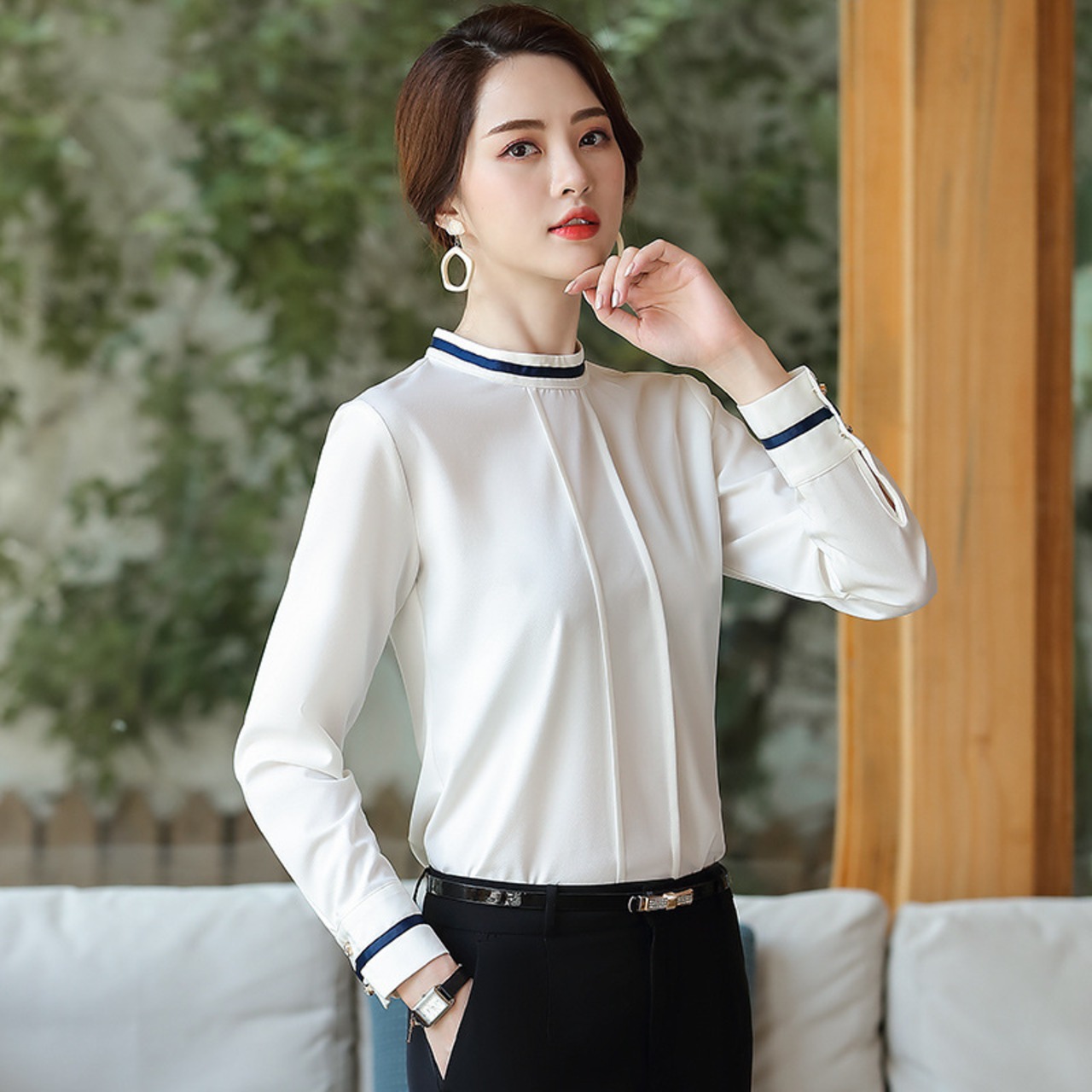 【新作】【送料無料】 Real s2020春秋新作シャツ気質プロフェッショナルウェアルーズラージサイズ長袖シャツ女性デザインセンス-アリババ ロング 大きめサイズ スプリング 春物 オータム 秋物 12b235532826283