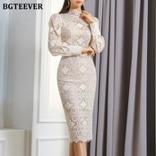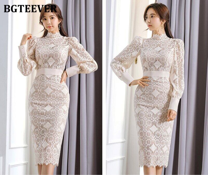 【新作】【送料無料】 BGTEEVER春夏レースドレス2020OLスタイルの女性のドレス長袖ボディコンドレススリムウエストVestidos ロング スプリング 春物 サマー 夏物 12b131865148800