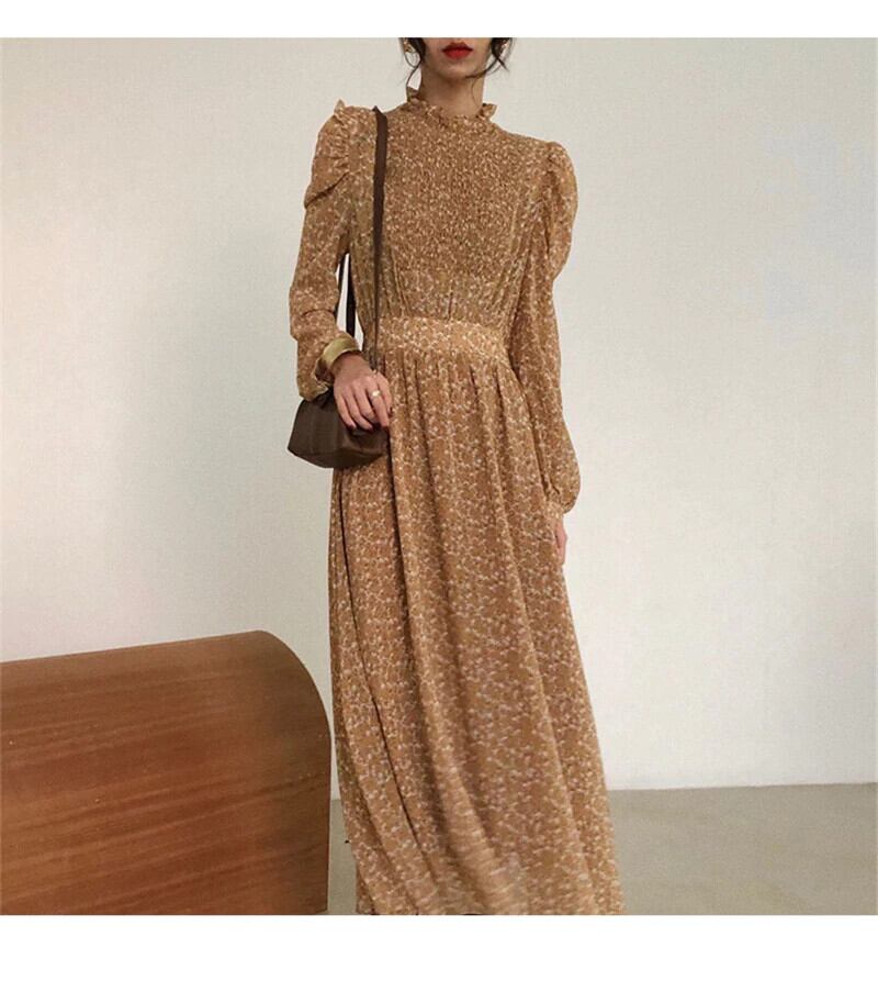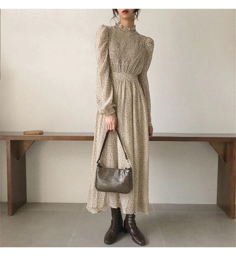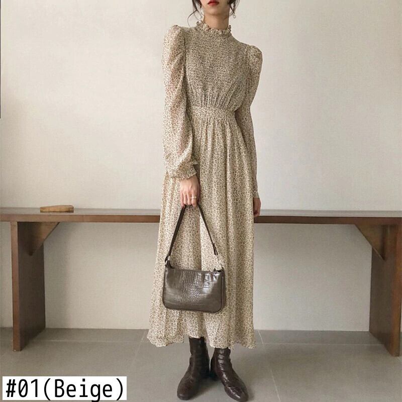 【新作】【送料無料】 BGTEEVERヴィンテージスタンドカラーシャーリングスリーブAラインドレスレディースフローラルプリント伸縮性ウエストドレス春Vestidosfemme 202 エラスティック スプリング 春物 花柄 フェミニン ビンテージ 12b156449896645