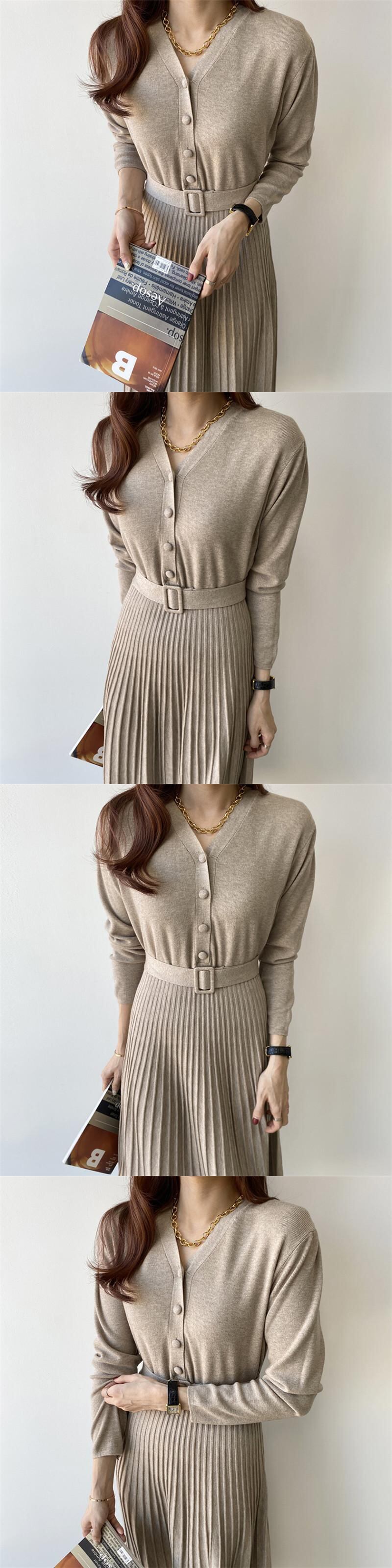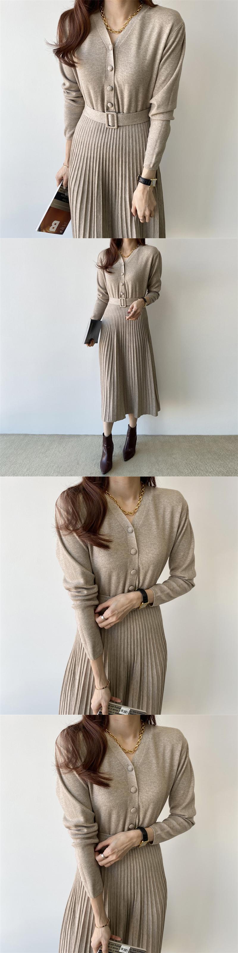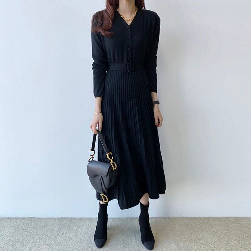 【新作】【送料無料】 BGTEEVERシックなVネックレディースニットドレスフロントボタンサッシュフルスリーブAラインドレス冬のロングセータードレス ウィンター 冬物 12b153837269626