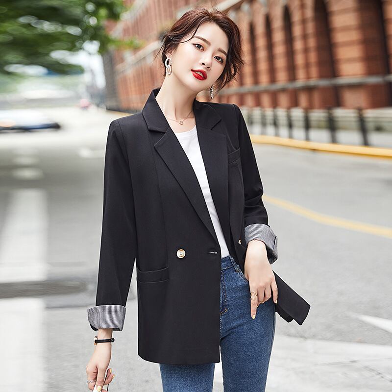 【新作】【送料無料】 リアルの秋のバージョンルーズワイルドプラスサイズのスーツジャケット2020新しいカジュアルファッションの小さなスーツジャケットの女性-アリババ 大きめサイズ オータム 秋物 12b239108133181