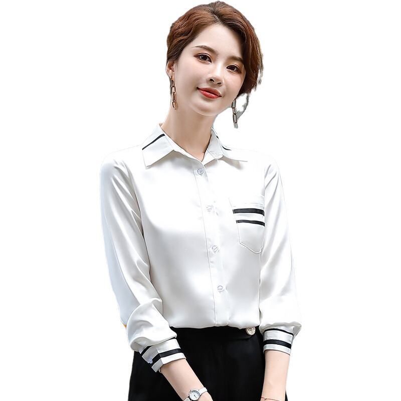 【新作】【送料無料】 リアルの春と秋バージョンの長袖シャツの女性2020新しい大型ルーズシャツ気質プロのトップトレンド-アリババ ロング 大きめサイズ スプリング 春物 オータム 秋物 12b234944068739