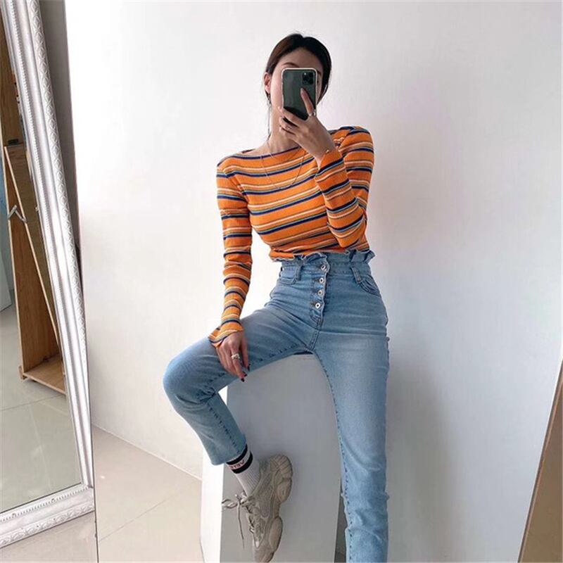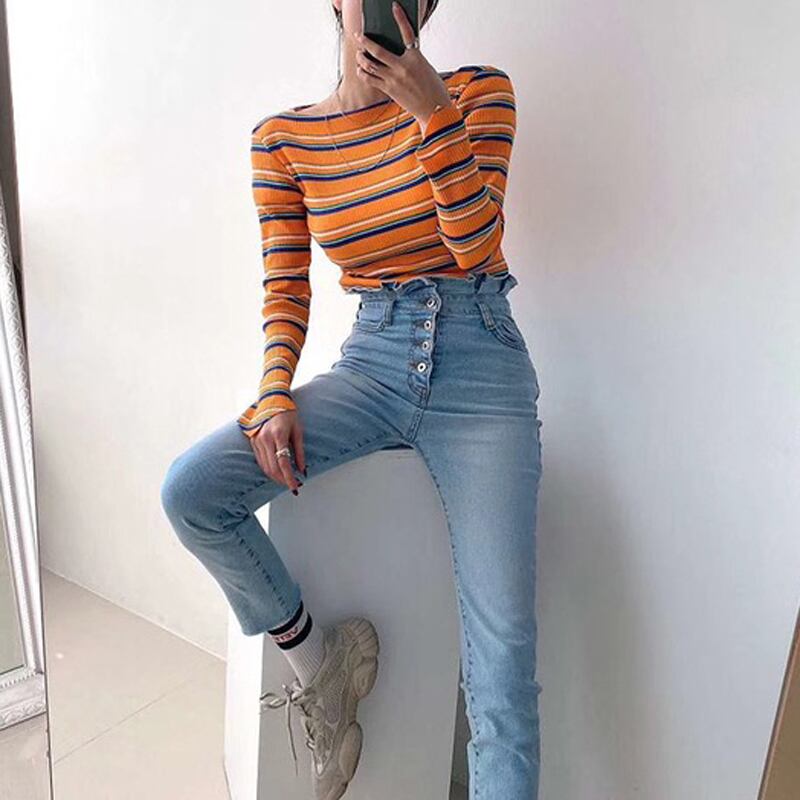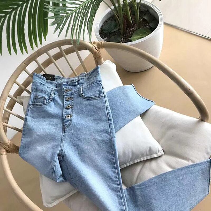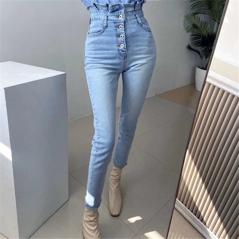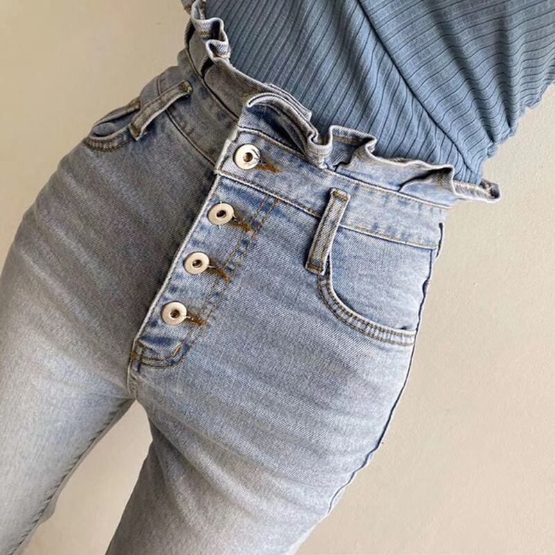 【新作】【送料無料】 BGTEEVERシングルブレストフリルレディースジーンズパンツウエストスキニージーンズ2020ストレッチレディースデニムパンツ ラッフル 12b167912675802