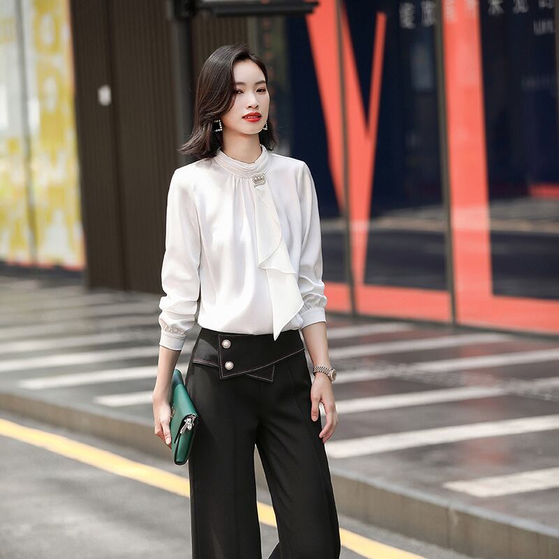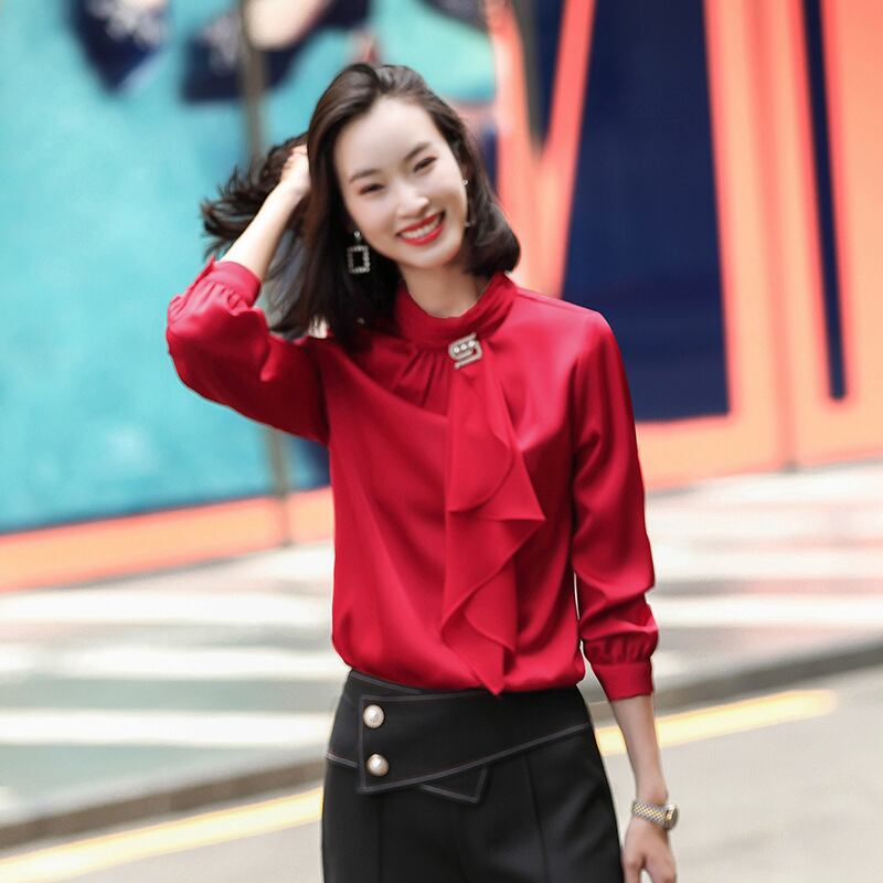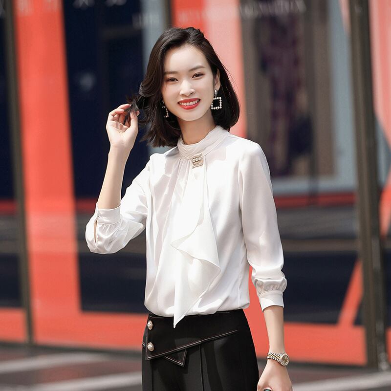 【新作】【送料無料】 リアルsプラスサイズファッション2020新しいアセテートサテンシャツ女性気質プロウェア秋の長袖シャツ-アリババ ロング 大きめサイズ オータム 秋物 12b261381513780