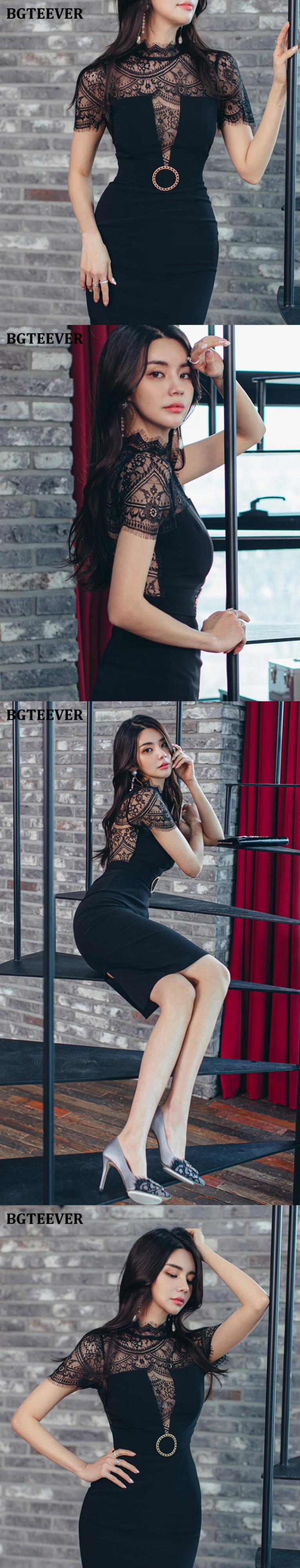 【新作】【送料無料】 BGTEEVERセクシーなレースパッチワーク黒のドレススリムな女性のドレスパーティーイブニングVestidosシースボディコンドレス2020 ブラック 12b182436659285