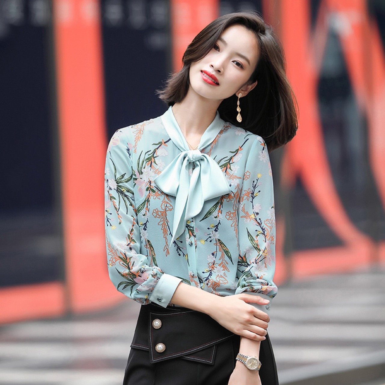 【新作】【送料無料】 リアルsプラスサイズルーズプリント長袖シャツ2020秋新作センスブラウスオールマッチシャツレディース-アリババ ロング 大きめサイズ オータム 秋物 12b235247891335