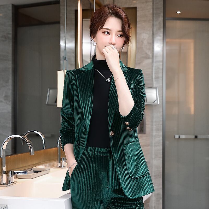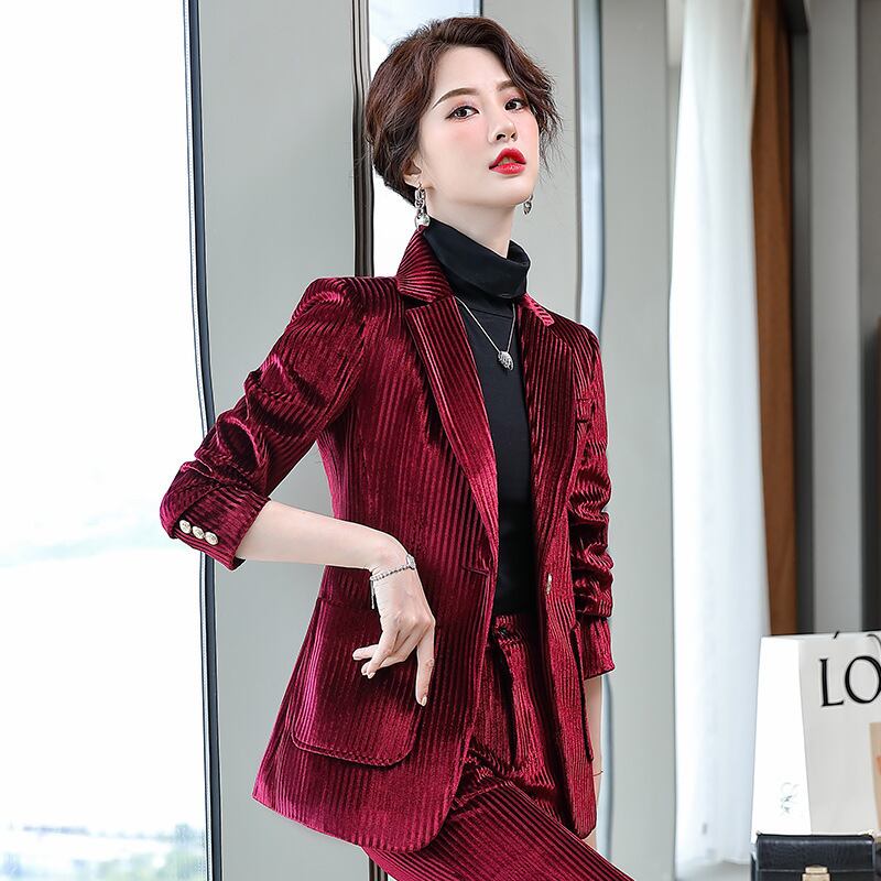 【新作】【送料無料】 本物の秋と冬の新しいプロのスーツの女性の気質のインタビュー作業着ルーズプラスサイズのツーピーススーツ-アリババ 大きめサイズ オータム 秋物 ウィンター 冬物 12b243040622586