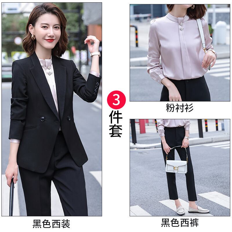 【新作】【送料無料】 Real s2020新しい黒のプロのスーツ女性の春と秋のバージョンルーズツーピース大型インタビュー作業服-アリババ ブラック 大きめサイズ スプリング 春物 オータム 秋物 12b25302651866