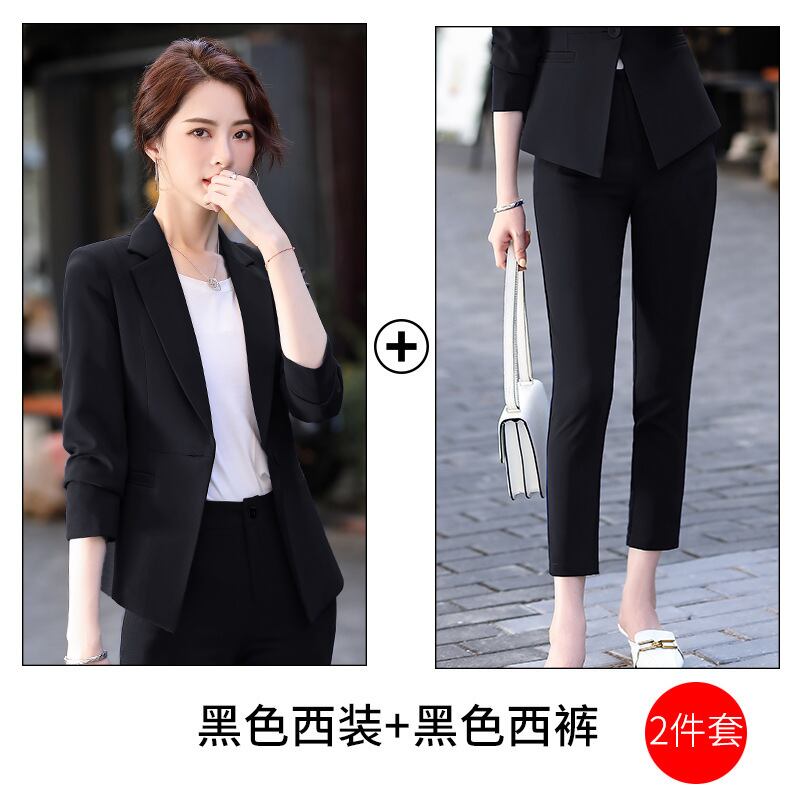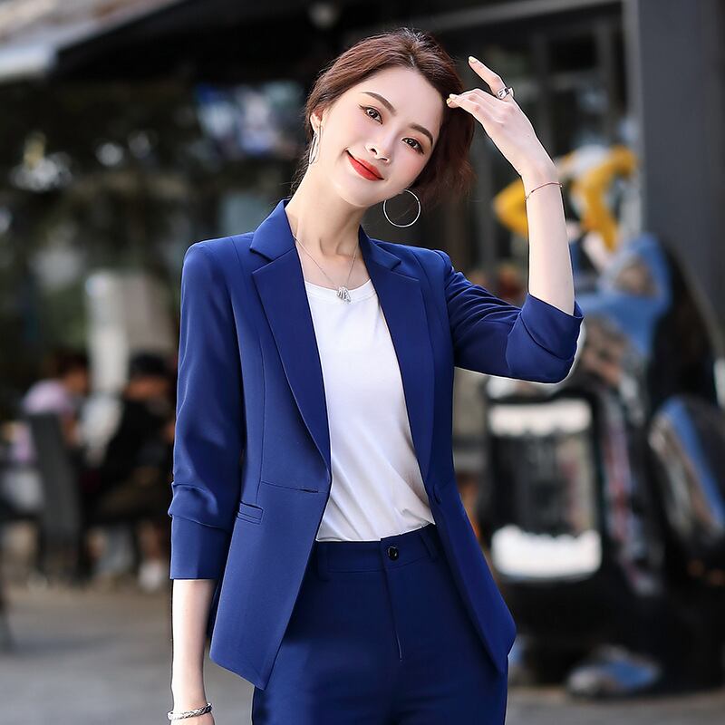 【新作】【送料無料】 リアルの春と秋のインタビュープロのスーツの女性2020新しいルーズで用途の広いラージサイズのツーピーススモールスーツ-アリババ 大きめサイズ スプリング 春物 オータム 秋物 12b260481682462