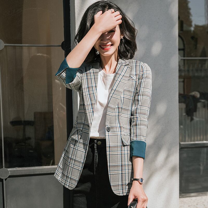 【新作】【送料無料】 Real s2020秋冬新作スモールスーツジャケットレディースカジュアルチェック柄スモールスーツルーズラージサイズスーツジャケット-アリババ 大きめサイズ オータム 秋物 ウィンター 冬物 12b295138532581