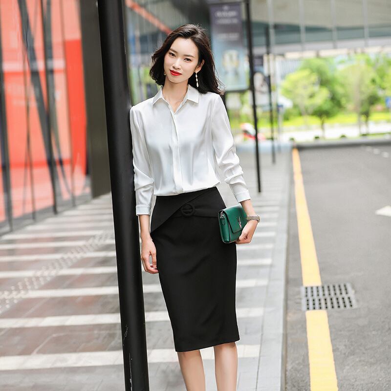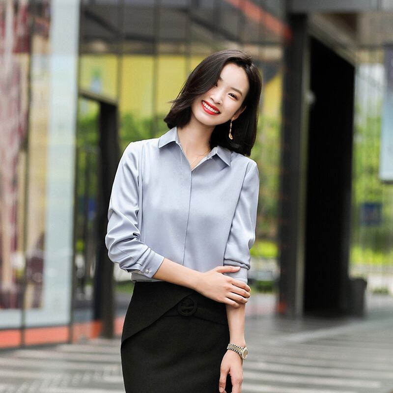 【新作】【送料無料】 アセテートサテンシャツ長袖2020春秋新作カジュアルマルブラウスデザインセンスニッチプロウェア女性-アリババ ロング スプリング 春物 オータム 秋物 12b213134338629